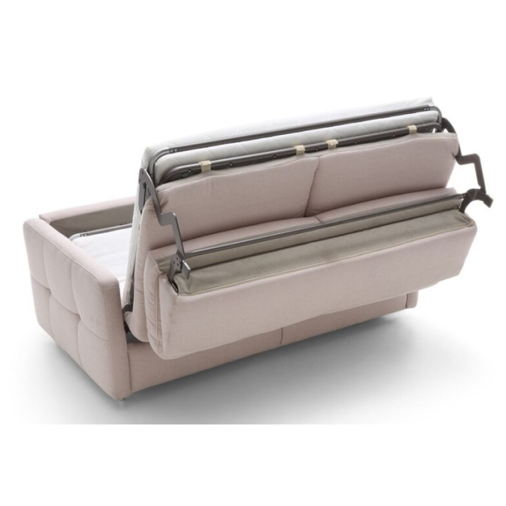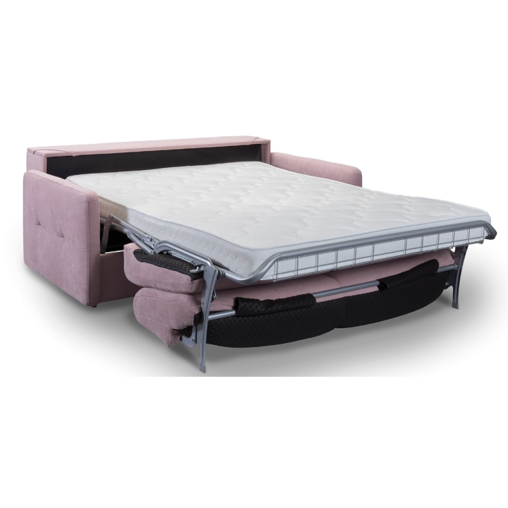One of the key strengths of the Ema 2(140) FF sofa is its sleeping function. Thanks to the use of the Italian MONO type frame, the unfolding mechanism is extremely simple and intuitive. The frame consists of a metal frame, upholstery straps and a large lattice-shaped metal element integrated into the frame. Attached to the frame is a double-sided mattress, 12 cm thick (with a tolerance of +/- 1 cm), made of polyurethane foam, which adapts evenly to the user's body, ensuring a comfortable sleep.When the furniture is unfolded, the backrest and seat are hidden under the frame. The mattress cover is made of Carbon fabric with a weight of 195 g/m², which ensures durability and ease of cleaning.