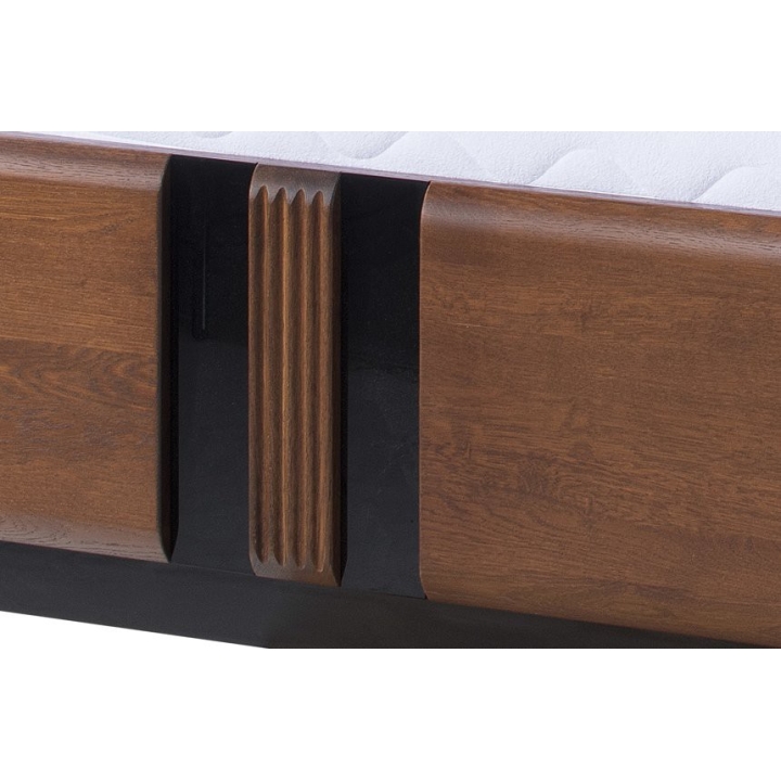 The furniture's antique oak finish emphasises its natural style and allows it to be easily matched with other elements of the bedroom décor. As a result, the bed looks great in both modern and classic interiors, creating a cosy space for resting. The furniture has been designed with durability and safety in mind. Its construction can withstand a maximum load capacity of up to 200 kg.