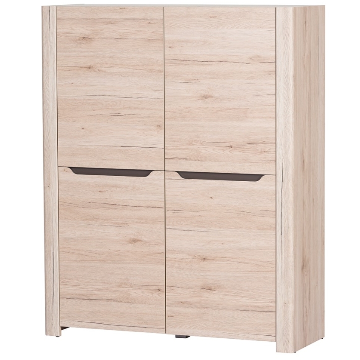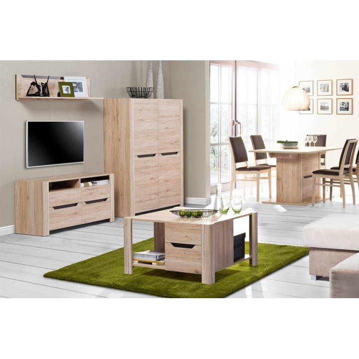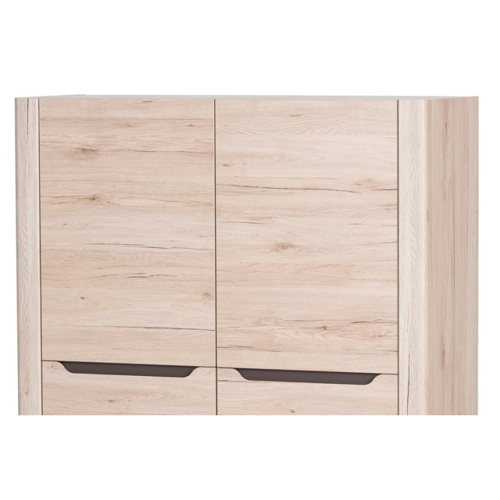 The furniture is equipped with two full hinged doors that open access to the spacious shelves. The chest of drawers also has subtle pulls, which further emphasises its modern character. The high quality of workmanship, the use of furniture board foiled in wood-like décor and carefully selected materials ensure durability and aesthetic appearance for years to come.