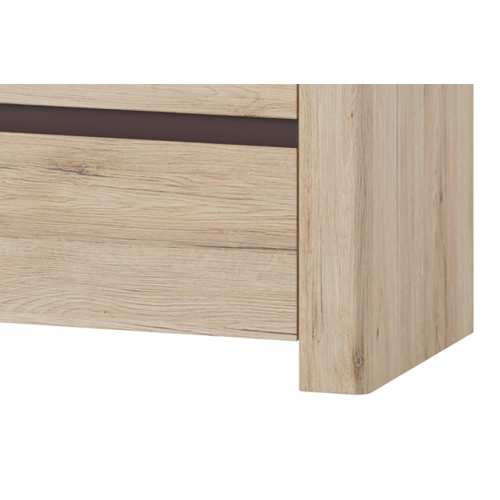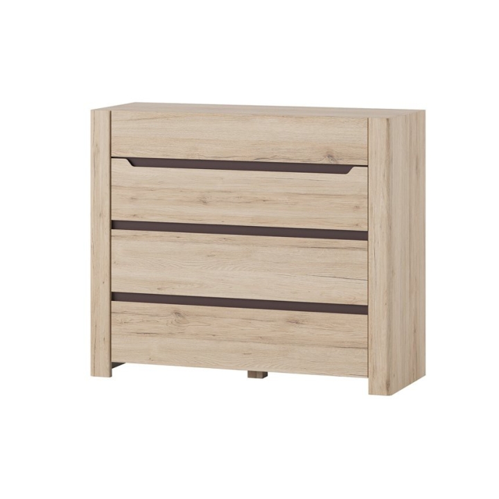 The Desjo 11 chest of drawers from the manufacturer Szynaka Meble is an eye-friendly piece of furniture, which will work perfectly in various arrangements, both in the bedroom and the living room. It was designed for those looking for a piece of furniture which will combine aesthetics with storage. With four appropriately sized drawers, the chest of drawers provides plenty of space for a variety of accessories and small items. The furniture's light colour scheme, in the shade of san remo oak, subtly harmonises with the brown accents, creating a harmonious effect that will easily blend into a variety of interiors.