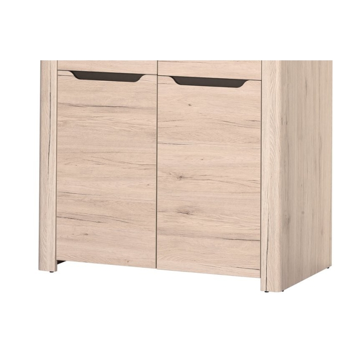 The Desjo 05 2-door wardrobe is a piece of furniture created for those who wish to combine modern design with comfort. Made in the colour of san remo oak with accents of uni brown, the wardrobe fits perfectly both in the bedroom and in the hallway or living room. The wardrobe fronts have been designed in a classic style with additional decorative elements, which emphasises its unique character. Thanks to its compact dimensions(98 cm wide, 193 cm high and 58 cm deep), the piece of furniture is perfect for smaller spaces while offering ample storage space.