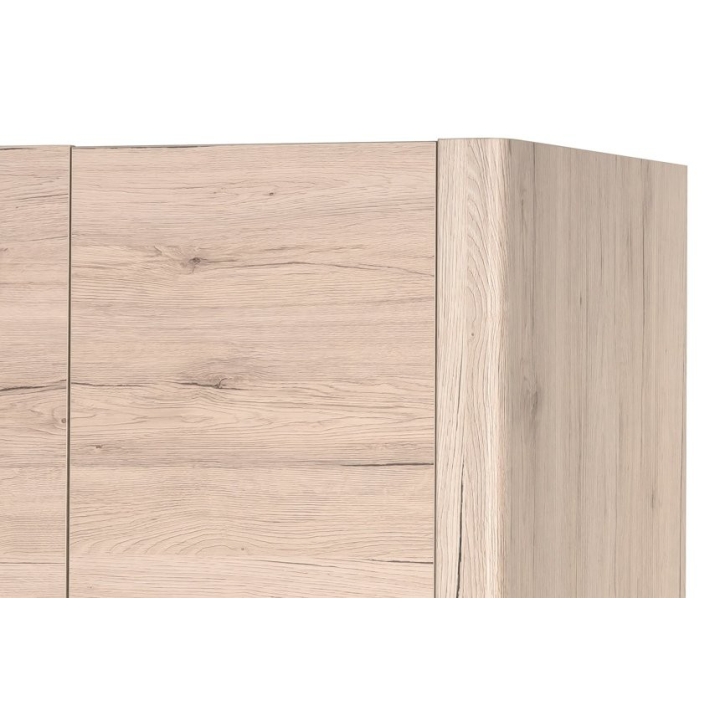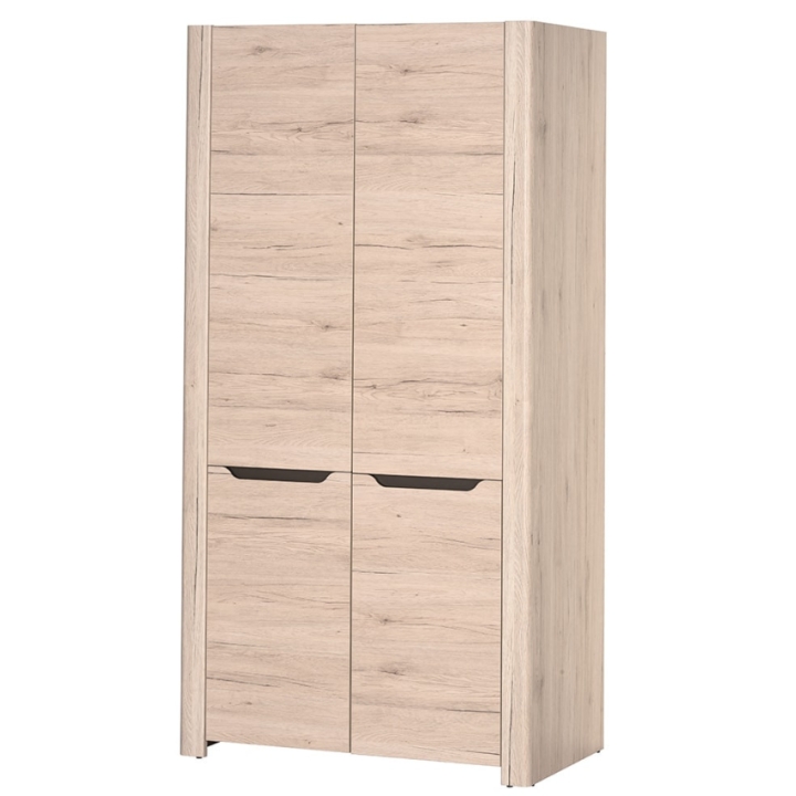 Thanks to the use of high-quality materials, such as furniture board foiled in woodgrain décor, the Desjo 05 wardrobe is characterised by durability and resistance to damage. The assembly set included allows the furniture to be securely and stably fixed to the wall, ensuring its durability and safety of use. The wardrobe does not contain a mirror or glass elements, making its appearance subdued and classic, ideal for a variety of interior arrangements.