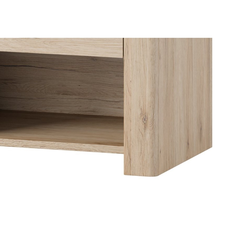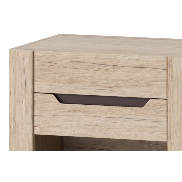 Bedsidetable with 1 drawer Desjo 52 from the manufacturer Szynaka Meble is a piece of furniture created with a view to bedrooms, where modern design and innovative solutions reign supreme. Made of high quality materials, the cabinet with a drawer goes perfectly with beds from the Desjo 50 and Desjo 53 collection, forming a harmonious whole with other elements of this series. With its light san remo oak colour scheme and subtle brown finish, it suits a variety of interior settings, both subdued and more expressive.