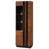 The Porti 12 showcase is a modern piece of furniture that stands out with its antique oak in combination with black tempered glass. The solid wood fronts of the vitrine, as well as the fluted decorative elements and the champagne-coloured metal handles and frames, give it a unique character. The display cabinet has 2 glazed doors that allow for an impressive display of objects, and there are 6 shelves inside.