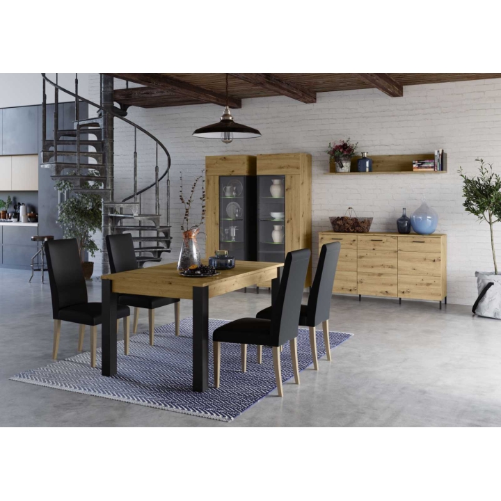 The Lucas Type 40 folding table from the collection of Szynaka Meble is an excellent choice for the dining room or living room, which will be successful during family and social gatherings. Its modern loft-style design combines usability with attractive appearance, providing comfortable conditions for shared meals. Thanks to its folding option, the table offers additional space, allowing you to comfortably accommodate more guests while saving space on a daily basis.