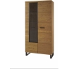 Type 12 2-door display cabinet from the Pratto collection by Szynaka Meble is a modern piece of furniture, which stands out with an interesting combination of colours and unique design. The structure of the vitrine is made of high quality solid wood and natural oak veneer, and its warm shade of rustic oak adds cosiness to the interior. One of the doors has a glazing in a black frame , made of tempered glass. The interior conceals eight capacious shelves, ideal for storing or displaying items.