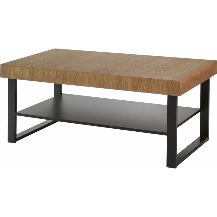 One of the distinguishing elements of the table is the metal frame in black, which acts as solid legs. This gives the furniture stability and visual lightness, which makes it fit well in both spacious and smaller rooms. The lower shelf provides additional storage space for books, magazines or other small items.
