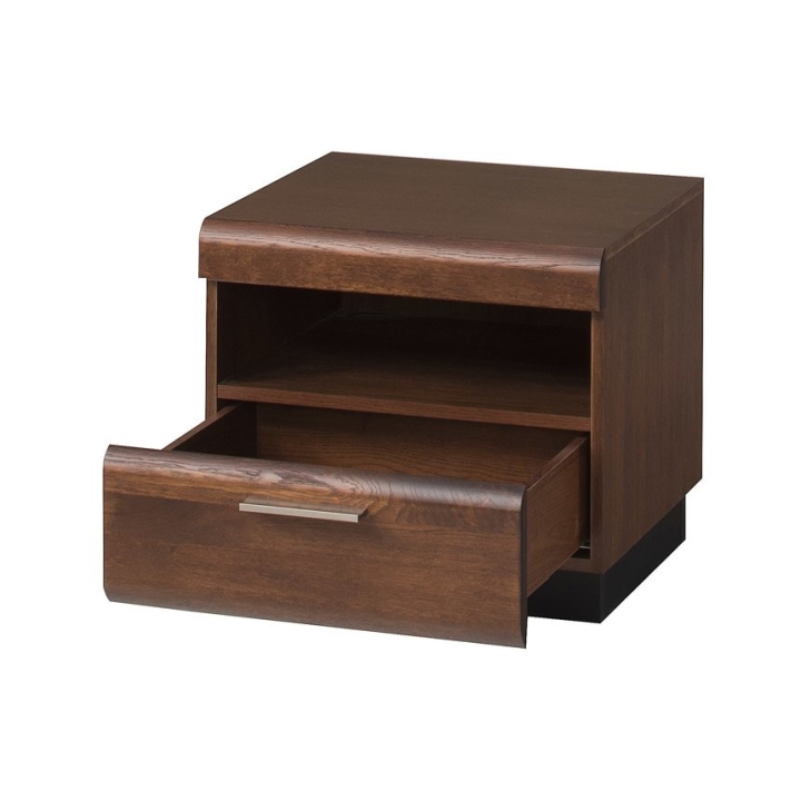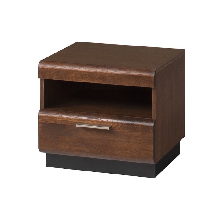 Type 79 bedside cabinet from the Porti collection by Szynaka Meble is an excellent choice for any bedroom, combining modern style and solid workmanship. Its massive construction and rounded edges give the furniture a modern, yet cosy character. The cabinet is made in the colour of Antique Oak, set on a black pedestal, it fits perfectly into a variety of interior arrangements, giving them a warm and unique atmosphere.