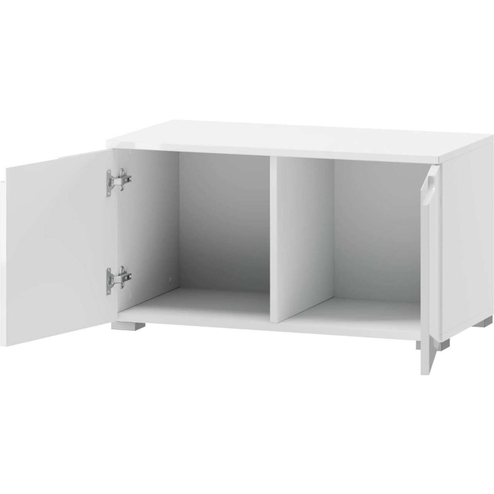 The Selene white gloss Type 18 cabinet is one of the elements of the Selene collection, designed by the Szynaka Meble brand. This model, measuring 79 cm wide, 43 cm high and 40 cm deep, will perfectly suit a living room, dining room, office, or children's and youth room, offering storage space. Thanks to its two-door design, the cabinet allows you to store items such as footwear, winter clothing or accessories that are worth hiding from view.
