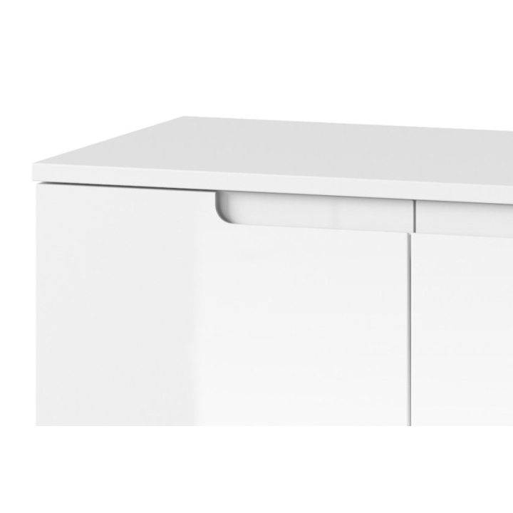 Made from robust materials, the cabinet combines PVC-foil-coated MDF on the fronts with laminated furniture board on the body. The white high-gloss/white matt finish emphasises its modern character. The handles, characteristic of the Selene collection, subtly integrated into the fronts, add to the minimalist look of the furniture and increase the comfort of use.