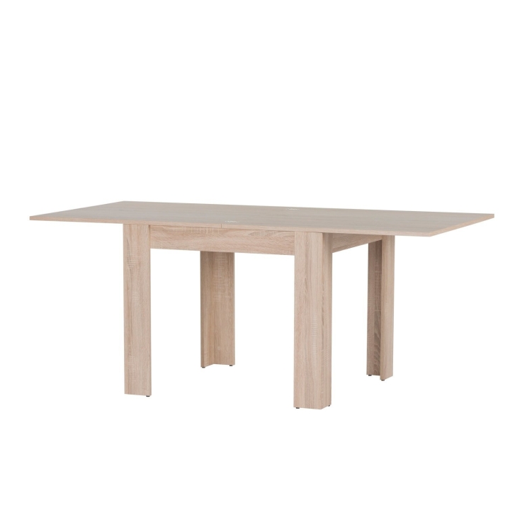 Its universal sonoma oak colour makes it suitable for a variety of interior styles, from minimalist to more classic. The table's dimensions are 90 cm wide (180 cm when unfolded), 77 cm high and 90 cm deep. An ideal choice for the dining room, kitchen or living room.