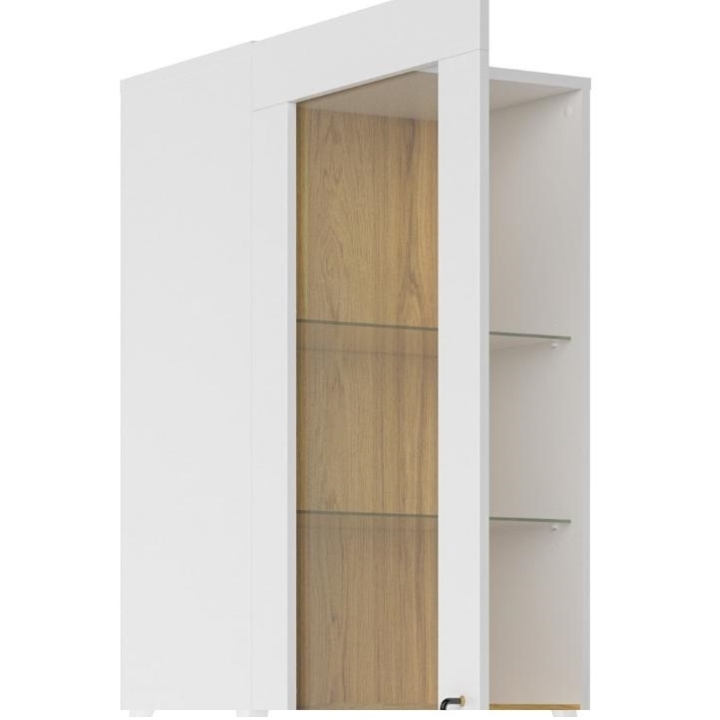 Are you dreaming of a piece of furniture that not only holds your things, but also becomes a unique element of interior design? The Barris 11 vitrine from the manufacturer Szynaka Meble is an excellent choice that combines modern design with comfortable use. Its compact dimensions - 60 cm wide, 200 cm high and 42 cm deep - make it fit perfectly even in smaller rooms. The colour scheme in shades of American walnut and white gives it a sophisticated look that suits a wide variety of design styles. Thanks to its solid workmanship, you can be sure of its durability and resistance to everyday use. The front of the display cabinet is made of MDF covered with PVC foil and the body is made of foiled board in a similar pattern. The steel handles in matt black with a delicate gold accent add a subtle touch of class to the furniture.