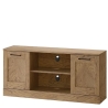 The Cozy 25RTV cabinet from the manufacturer Szynaka Meble is an excellent choice for those looking for a piece of furniture combining a simple form with plenty of storage space. Made of solid oak wood and furniture board in a natural oak veneer arranged in a herringbone pattern, the cabinet is distinguished by warm colours of oak rustical oil. The furniture measures 160 cm wide, 50 cm high and 42 cm deep, making it suitable for medium-sized rooms. Two full doors and three spacious shelves provide ample storage space for media, books or other items.