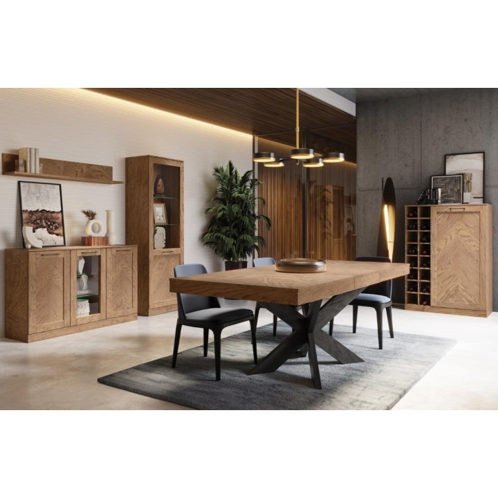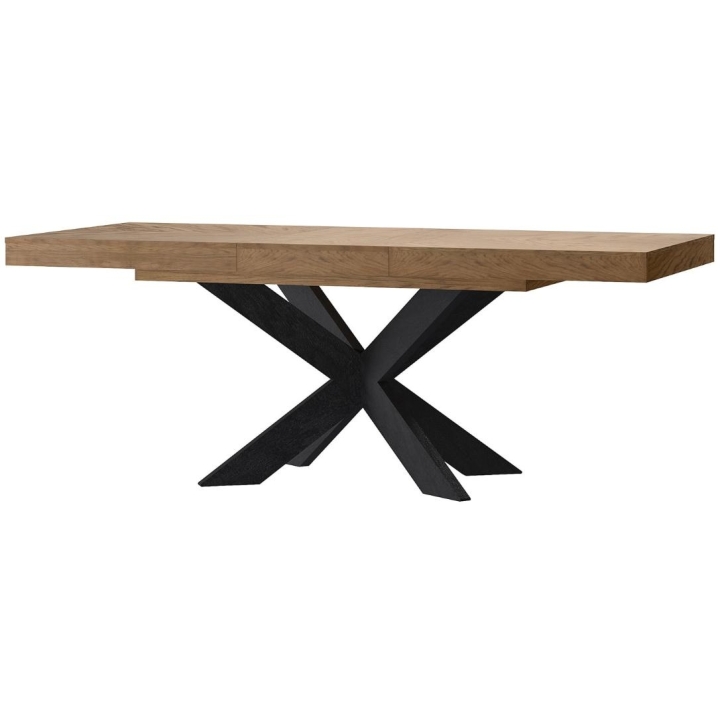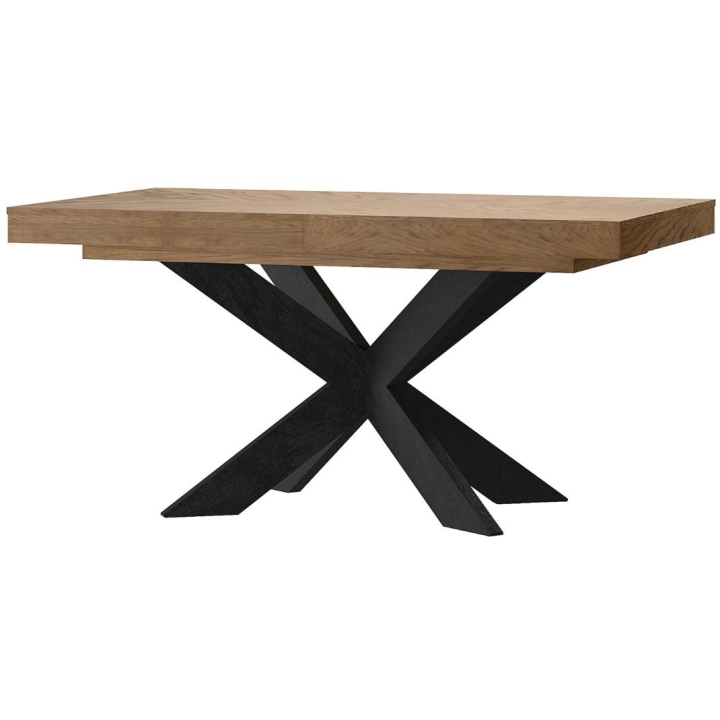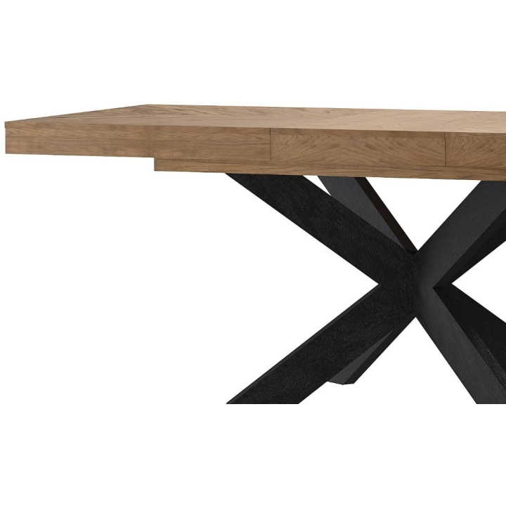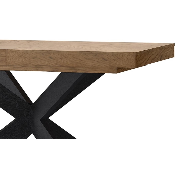 The Cozy 39extending table from the manufacturer Szynaka Meble is an excellent proposal for those looking for a combination of comfort and modern style. With a basic width of 160 cm and a depth of 95 cm, the table provides a comfortable place for several people, and after unfolding its width increases to 210 cm, which enables comfortable dining for up to 8 people. Its top is made of furniture board in natural oak veneer in oiled rustical oak, which blends beautifully with the black wooden legs in the shape of a cross, giving the furniture a unique character.