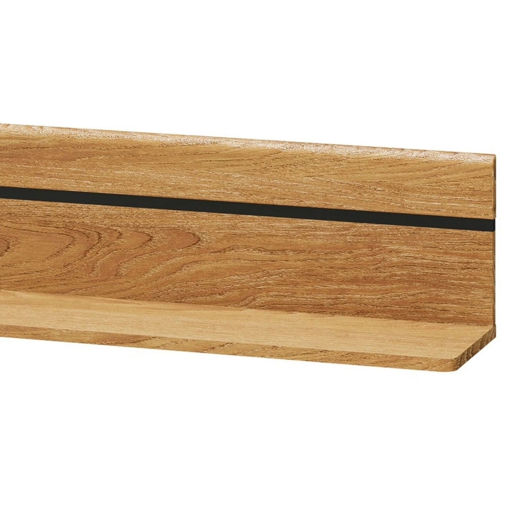 The Porto Type 35 shelf by Szynaka Meble is a modern accent that will add character and style to your interior. Made of solid wood in oiled golden oak colouring with contrasting elements of black matt, it brings freshness to any arrangement. Thanks to its wall-mounting capability, the shelf saves space while providing a stable and secure solution for your favourite decorations, books or photos.