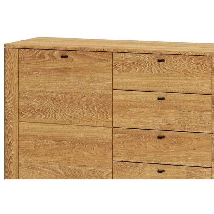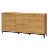 The Porto Type 44 chest of drawers by Szynaka Meble is a harmonious combination of comfort and modern design, which will enrich any interior. With dimensions of 180 cm wide, 88 cm high and 42 cm deep, the chest of drawers offers space for both storing and displaying favourite items. Made from durable materials, including oiled golden oak combined with matte black accents,solid brushed wood fronts, the chest of drawers combines the natural warmth of wood with an industrial feel.