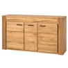 Measuring 161 cm wide, 88 cm high and 42 cm deep, thechest of drawers has been carefully crafted from solid oak wood and veneered furniture board for durability and strength. Three full hinged doors conceal six spacious shelves, offering plenty of storage space for all your essentials and accessories.
