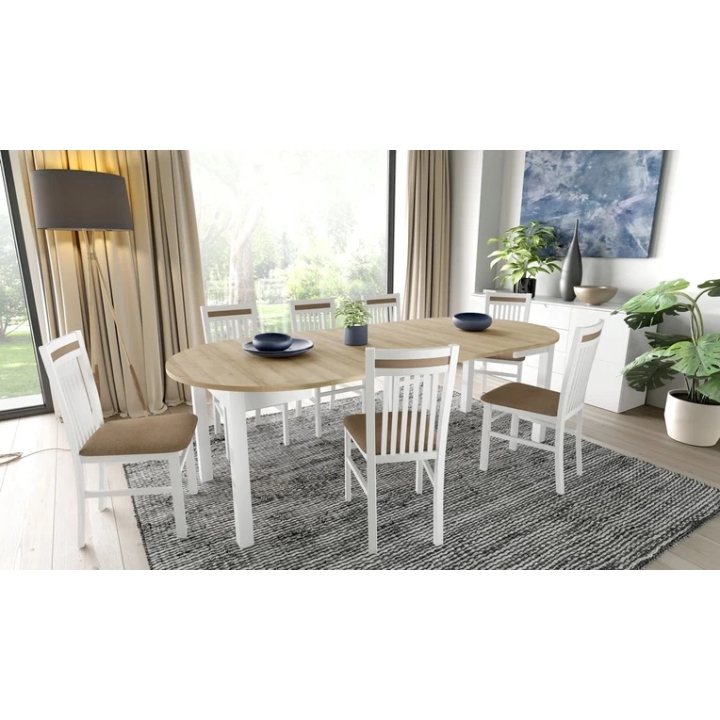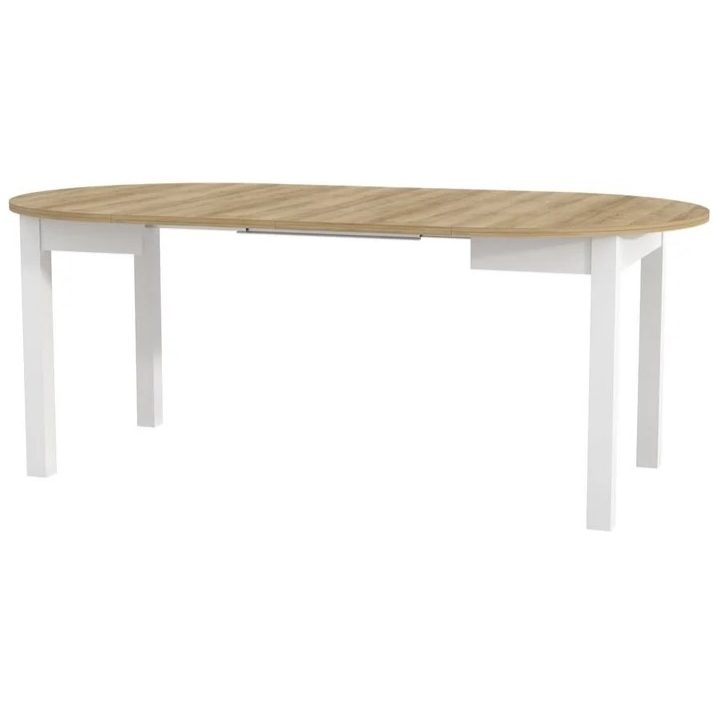 The Indus 02extending table with dimensions 105-240 cm is an exceptional piece of furniture from the renowned manufacturer Szynaka Meble, perfect for any modern interior. This dining table and kitchen table combines style with quality, and its attractive design makes it fit perfectly into various arrangements. The top in riviera oak or craft oak is supported by legs in white or black, making it easy to match the style of the room.
