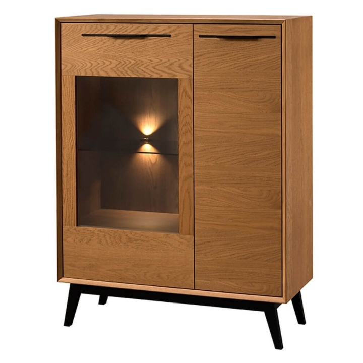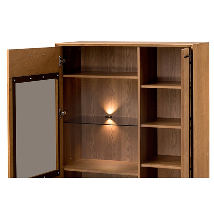 Made from natural oak veneer in caramel rustical oak, the display cabinet has a warm and subtle look that emphasises the unique texture of the wood. The caramel shade gives the furniture a cosy and natural look, blending perfectly with a variety of design styles.