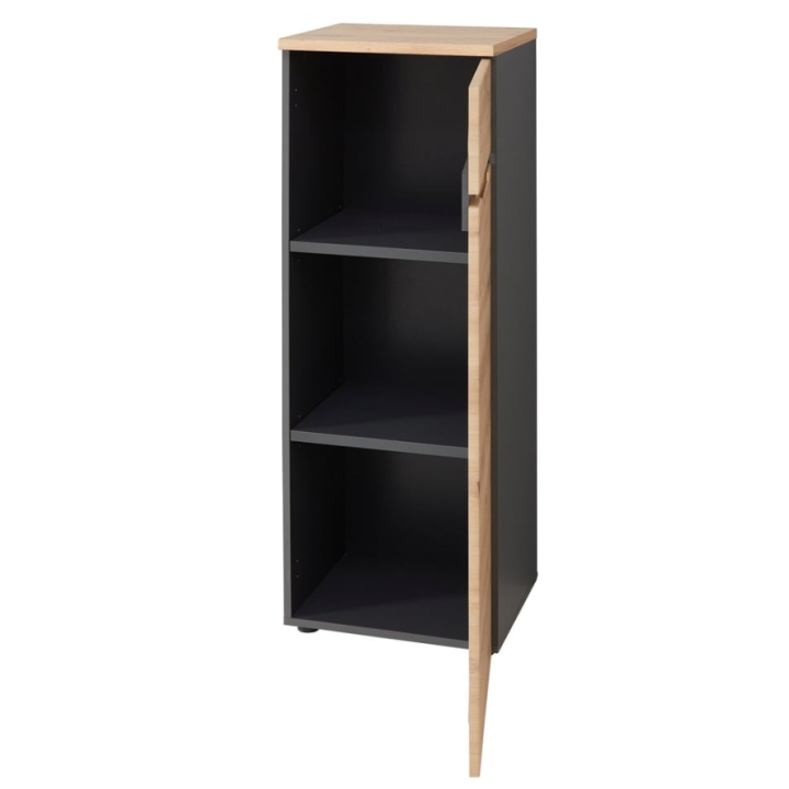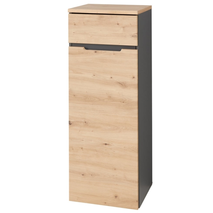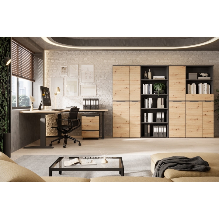 The Brego 13 wardrobe is a great option for those looking for a piece of furniture that not only fulfils its storage purpose, but also enriches the arrangement of the space, adding character to it. This slim, vertical model from the Brego collection, part of the Trendline range, is ideal for smaller rooms where every centimetre of space counts. Constructed from high-quality PVC-coated MDF in shades of artisan oak and laminated board in anthracite grey, it combines the warmth of natural wood with a modern finish that fits harmoniously into a variety of interior styles.