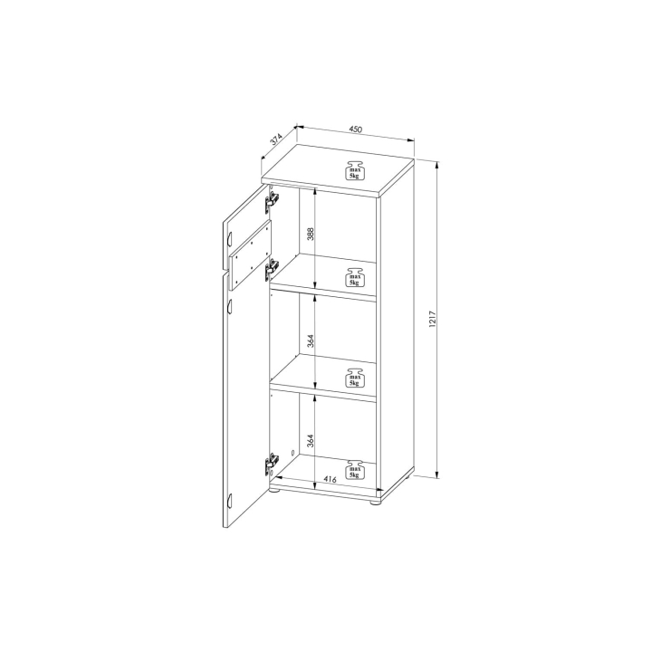 The dimensions of the Brego 13 wardrobe are 45 cm wide, 122 cm high and 38 cm deep. It is a compact piece of furniture which, thanks to its size, will fit perfectly into narrow corridors, small bedrooms, offices or even hallways. Its sleek form allows it to be placed in almost any part of the house, while offering the spaciousness of the wardrobe interior, despite the small size of the furniture itself.