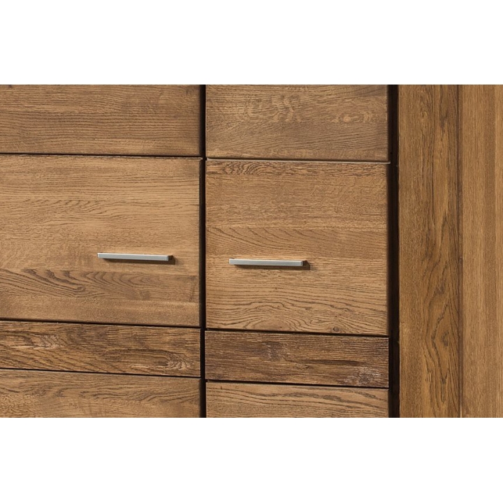 Two-door wardrobe Velvet type 70 from the manufacturer Szynaka furniture was designed with a view to functional and aesthetic storage of clothes. Its warm oak rustic colouring makes it fit perfectly into both classic and modern interiors. This model is particularly recommended for a bedroom or dressing room, where it will allow you to organise your clothes and accessories, while providing a consistent look to the room.