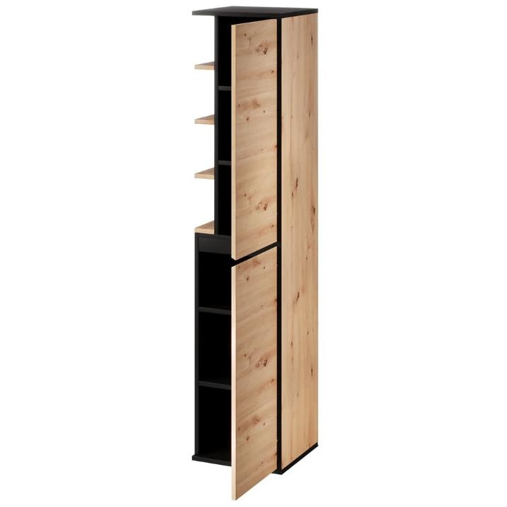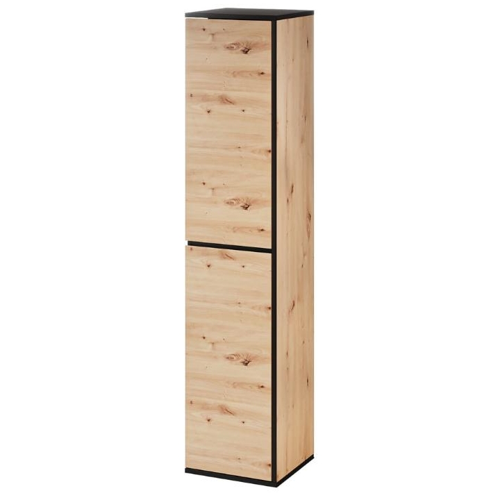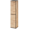 The Mossa Type 70 hanging cabinet by Szynaka Meble is a unique bathroom furniture with a width of 35 cm, a depth of 33 cm and a height of 160 cm, perfectly matching contemporary interiors. The whole piece is maintained in the colours of light oak (artisan oak) and black, which gives it a fresh and close to nature look that perfectly suits bright bathrooms.