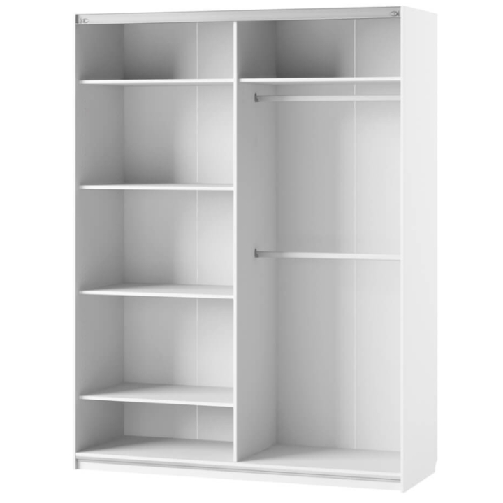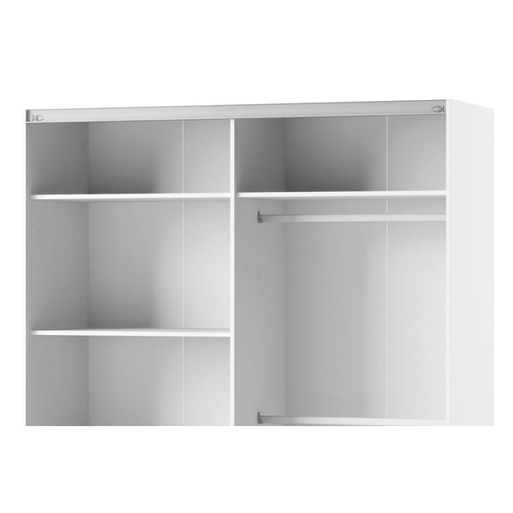 The interior of the wardrobe has been designed for maximum clothing storage comfort. Two rods at different heights make it possible to hang long coats and dresses as well as shorter garments such as jackets. In addition, five shelves allow underwear, shirts or winter accessories to be organised, providing clarity and easy access to each item.