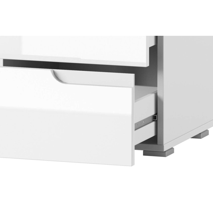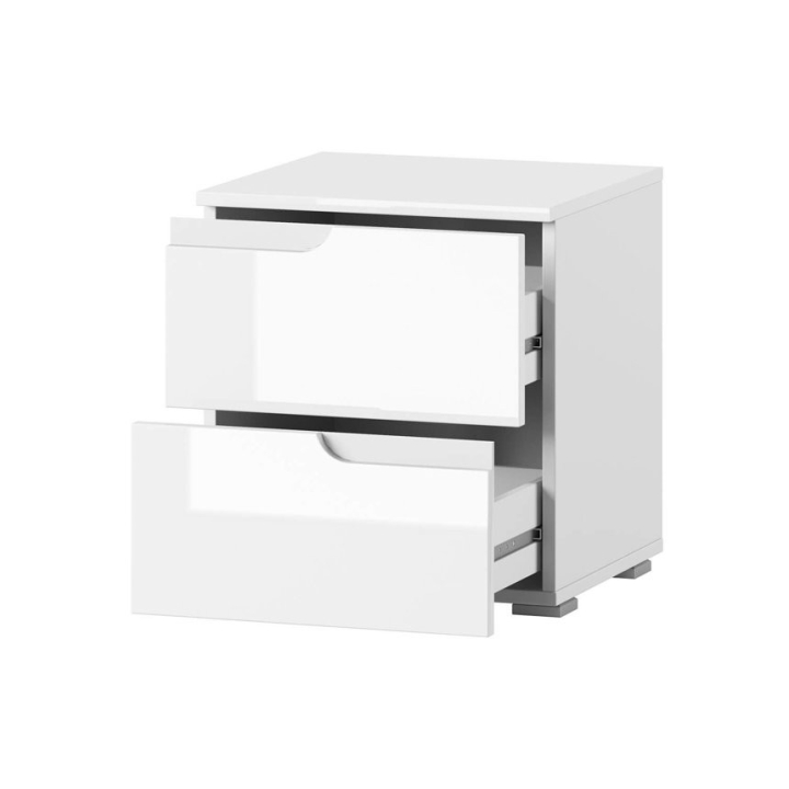 The white gloss and matte finish brings a modern touch to the interior, and the universal design makes the cabinet easy to blend with other furniture from the Selene collection. The white Selene bedside cabinet is a solid piece of furniture that combines careful workmanship and aesthetics to ensure comfort in everyday use. Furniture for self-assembly.