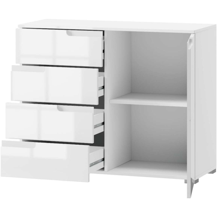The white gloss and matte finish gives the furniture a modern character and versatility, making it easy to combine with other pieces of furniture from the Selene collection. The compact dimensions(100 x 80 x 40 cm) make the chest of drawers fit perfectly into both smaller and larger rooms. The Selene chest of drawers by Szynaka Meble is an ideal choice for those who value simplicity, durability and modern design in one.