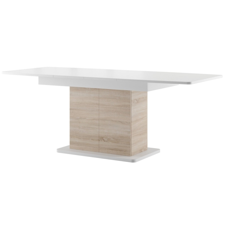 The Star 03 extending table from Szynaka Meble is an ideal solution for modern interiors that combine aesthetics with functionality and care for maximum use of space. The model is available in white matt with sonoma oak which makes it possible to match it with both classic and modern interiors.