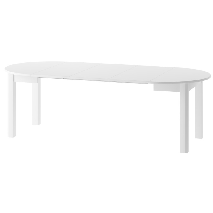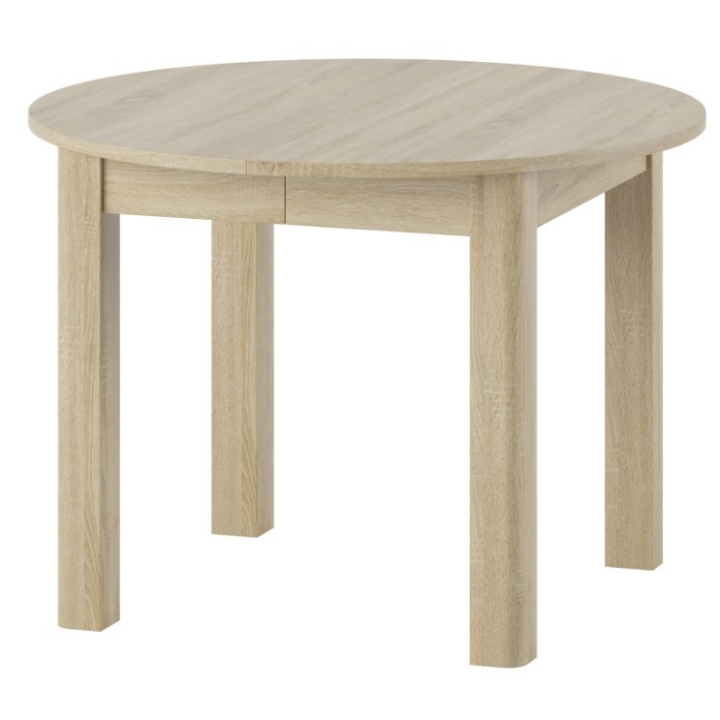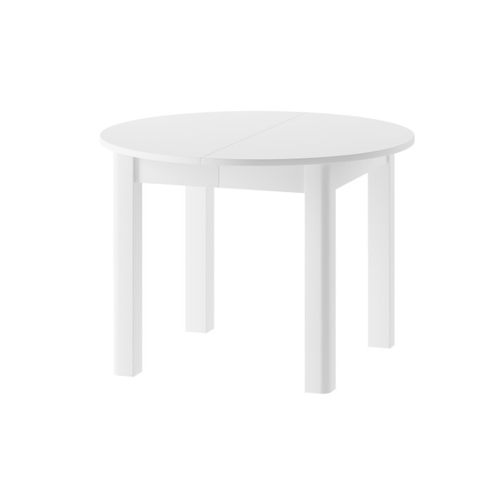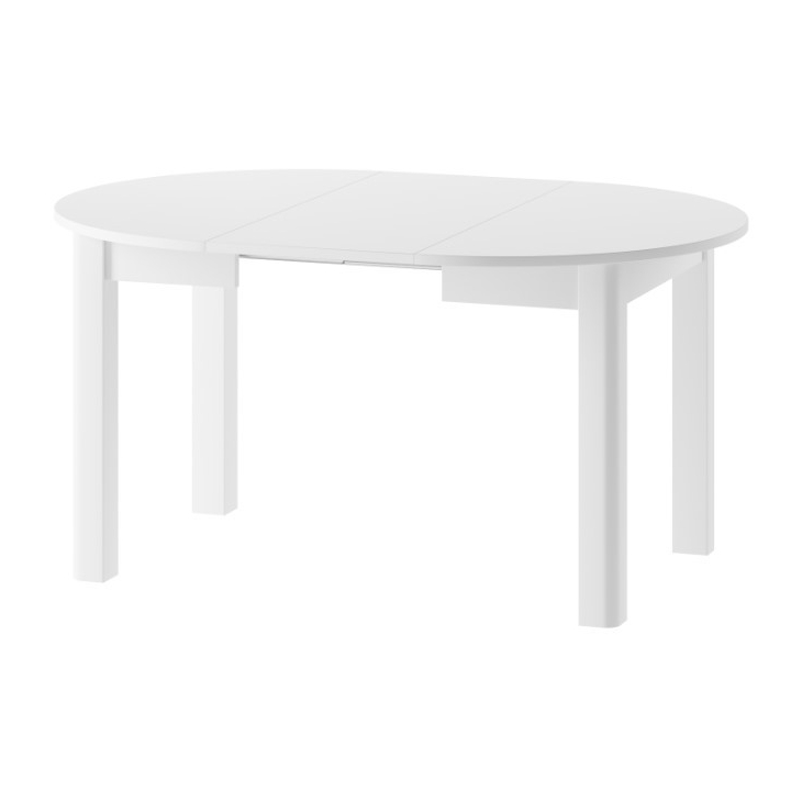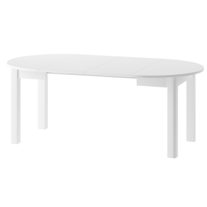 The table is available in a choice of two shades - oak sonoma or white matt. It has a round top, which can be extended to accommodate guests. from 105 cm to as much as 240 cm.The system itself is easy and comfortable to use. On a day-to-day basis, it takes up very little space when folded, so it can also be successfully used in small domestic spaces with a lack of free space. The three table inserts are separately retractable outside the frame, which gives us the opportunity to move and rearrange the table, as they do not weigh down its structure.