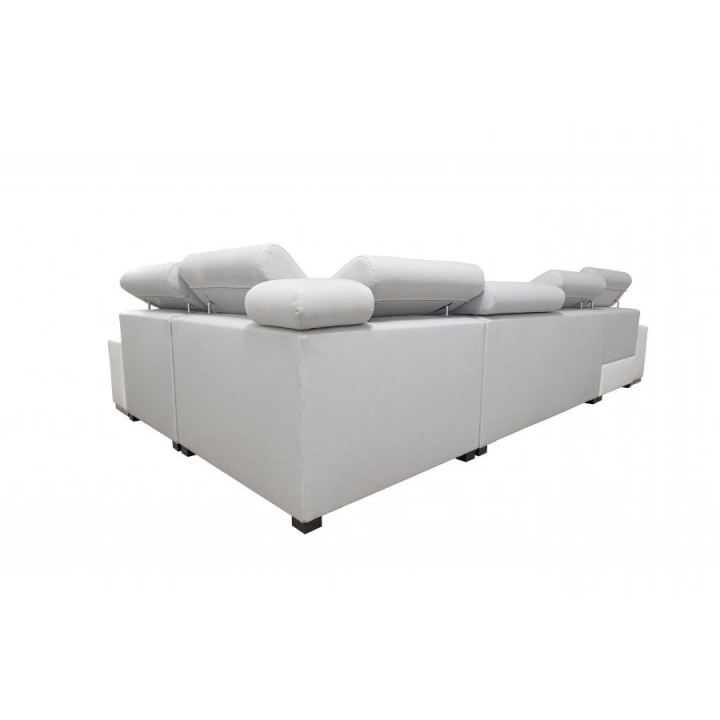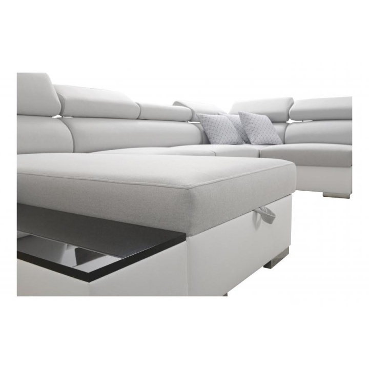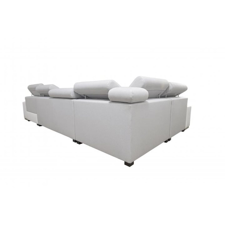 The equipment includes 6 adjustable headrests, 2 bedding containers, an opening bar, and cup holders available in black or silver. In addition, a movable extension module has been incorporated to adapt the layout to changing user needs. The sofa is built on a durable frame combining wooden construction and particleboard, reinforced with wave springs.