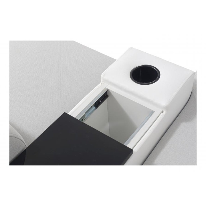 The furniture includes 6 adjustable headrests, enabling personalized neck and head support. Users also gain access to 3 bedding storage compartments, which help maintain order in the living space. Additional equipment features an opening bar, cup holders, and a movable extension, enhancing overall convenience.