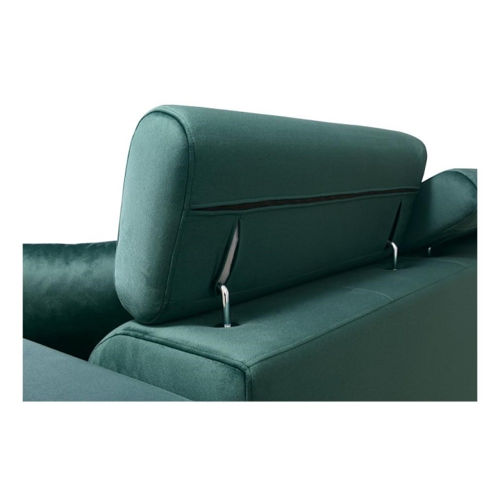 The rear legs are offered in wooden options black, white, alder, wenge, and beech as well as a chrome variant available for an additional fee, allowing full customization of the finish. The sofa may be upholstered entirely in any fabric chosen by the customer. Thanks to the advanced configurator, it is possible to adjust the upholstery to individual aesthetic preferences; dozens of fabrics with various textures, colors, and properties are available, making it easy to integrate the furniture into the intended interior design concept. The model provides not only everyday comfort but also extensive possibilities for visual personalization.