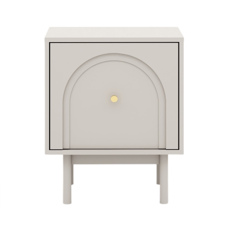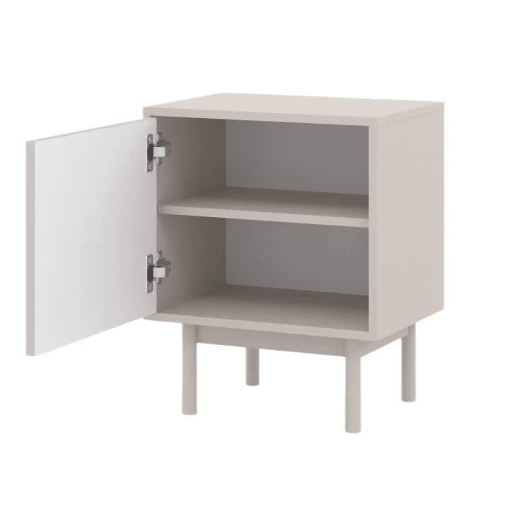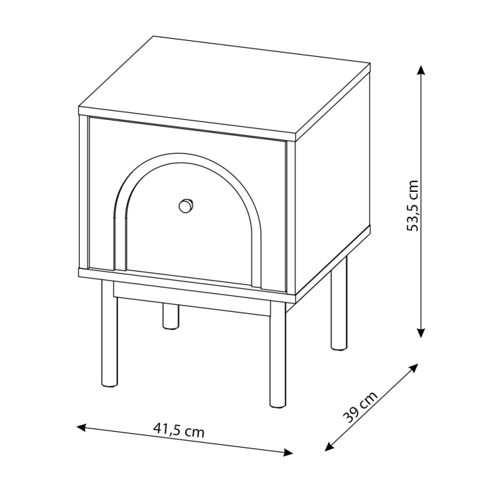 The Mazoma bedside table attracts attention with its subtle cashmere shade colouring, which finds its perfect match in modern arrangements. Its small size of 41.5 cm in width, 39 cm in depth and 53.5 cm in height means that it will fit into a limited space, while offering full usability. The full front conceals a single shelf for storing everyday objects.
