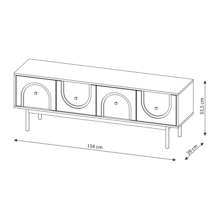 The furniture's dimensions - 154 cm wide, 53.5 cm high and 39 cm deep - make it a suitable choice for both larger living rooms and more intimate spaces. Its form does not dominate the interior, while at the same time providing sufficient storage space. The proportions of the solid have been chosen to maintain a balance between visual lightness and capacity.