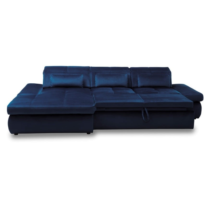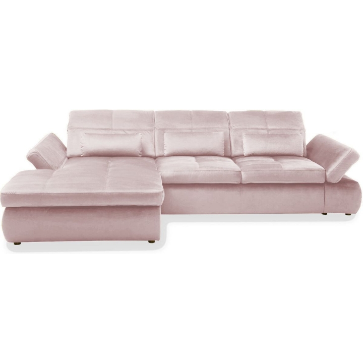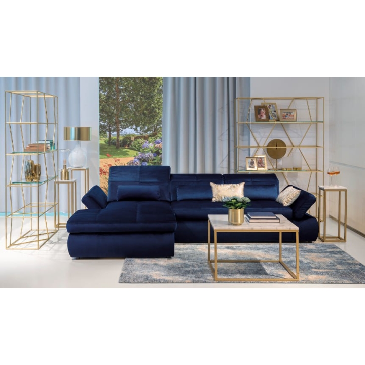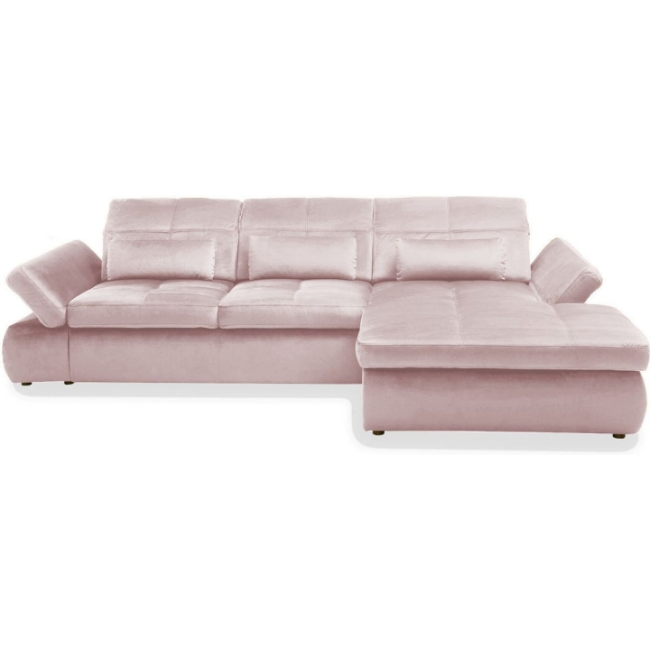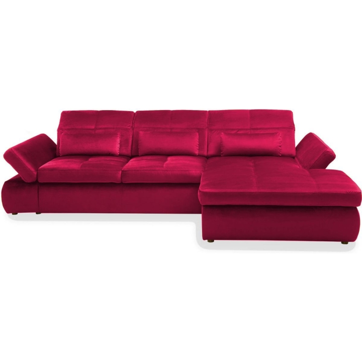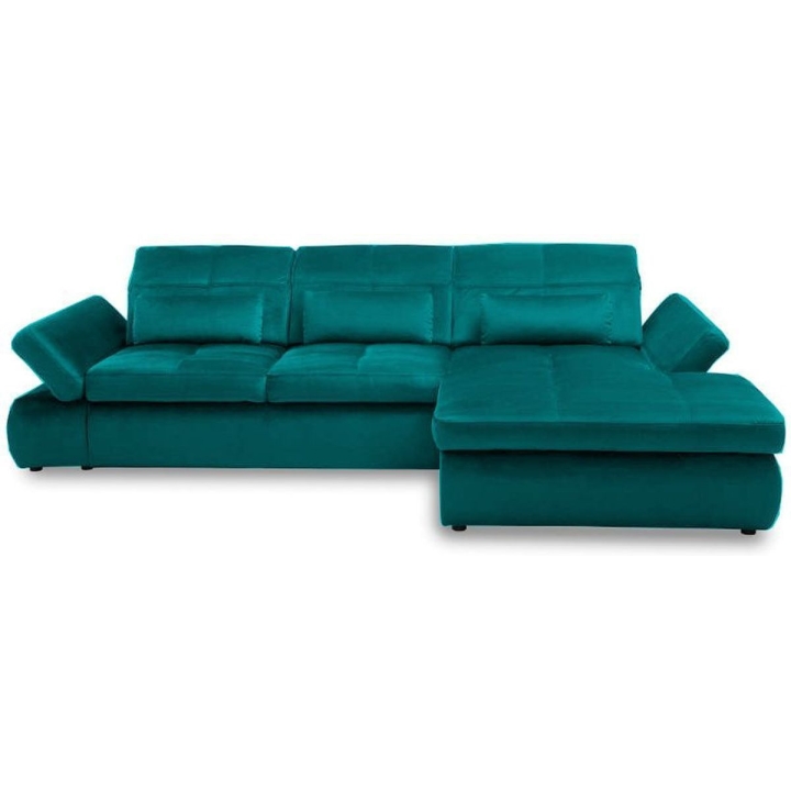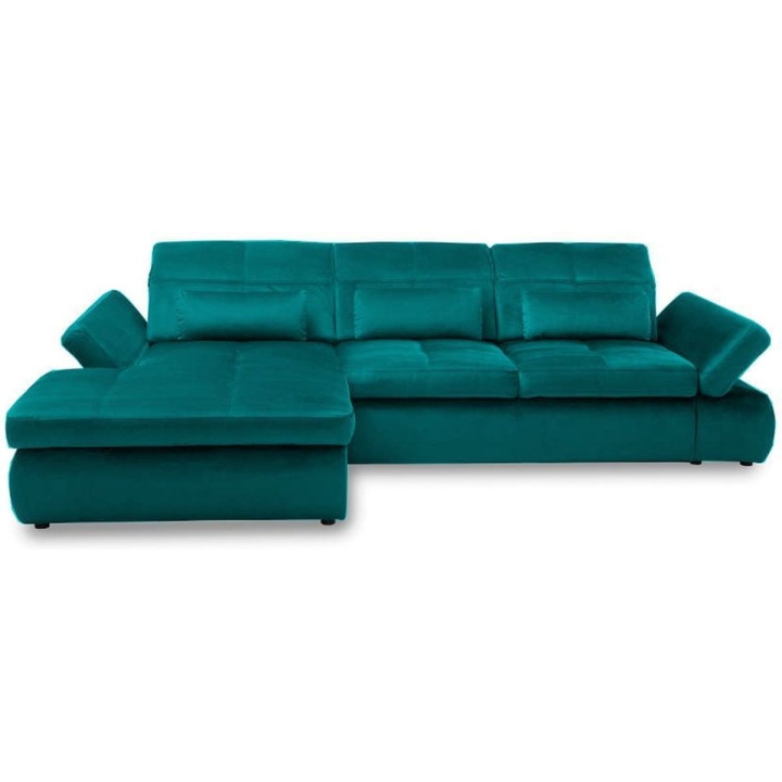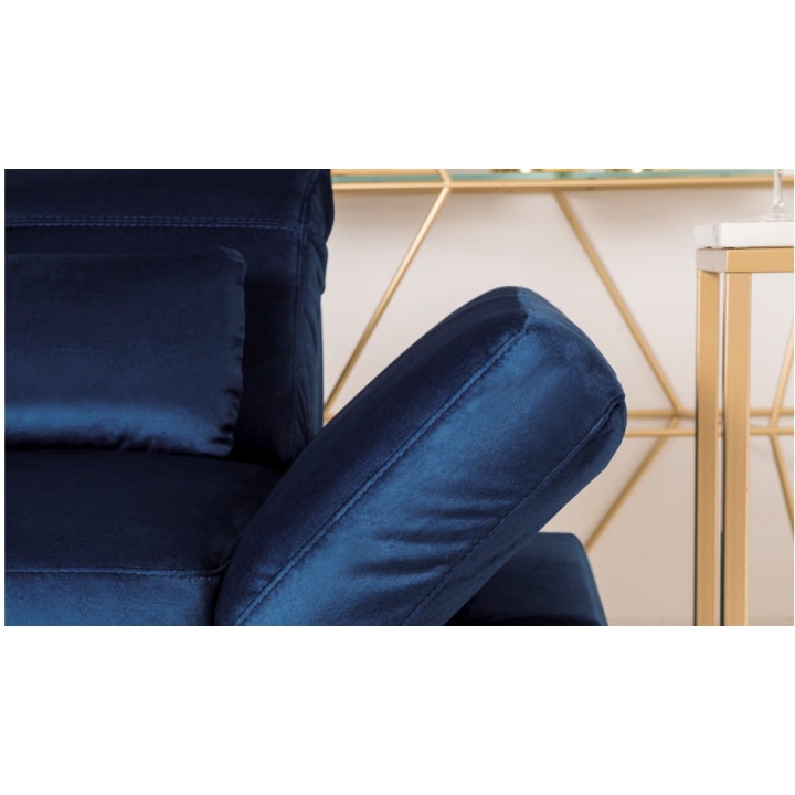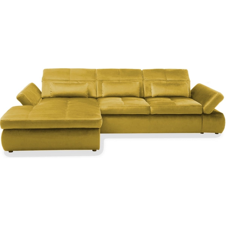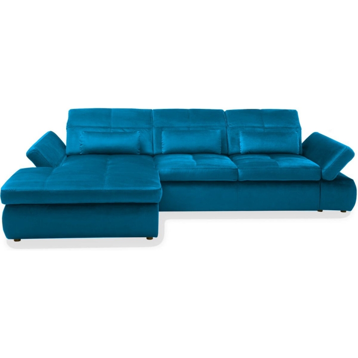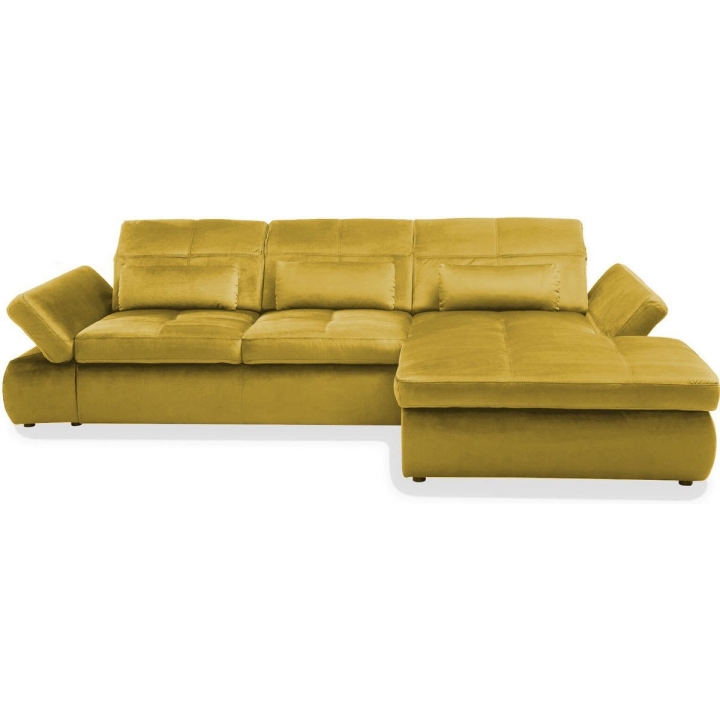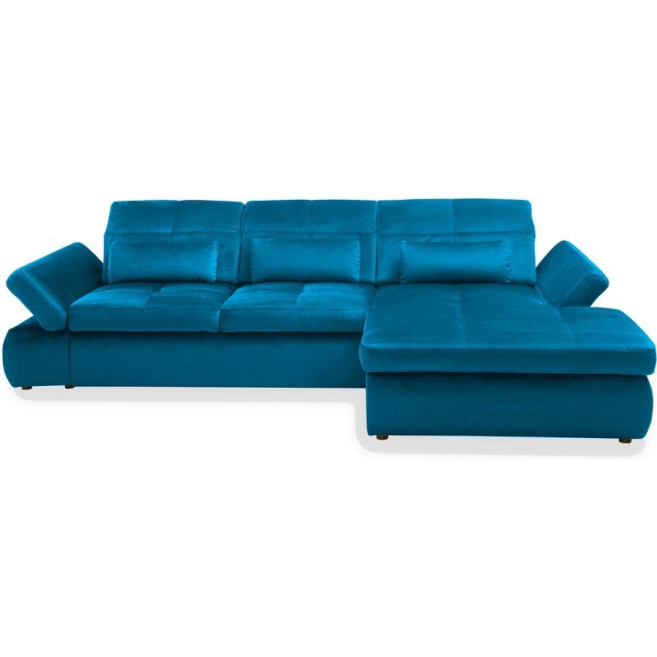 The Ortensia 1.5SW/2RC0/BS sofa bed by VERO is a proposal for a piece of furniture with a simple, modern design featuring a slightly quilted seat and back. The sofa has an upholstered back which makes it possible to place it in the centre of a room. It has a sleeping function and a bedding container, which enhances its functionality. Adjustable headrests and adjustable armrests make the piece of furniture even more comfortable, allowing you to adjust the backrest and the angle of the armrest to suit your needs. The Ortensia corner sofa has deep seats, which is why three lumbar cushions are supplied.