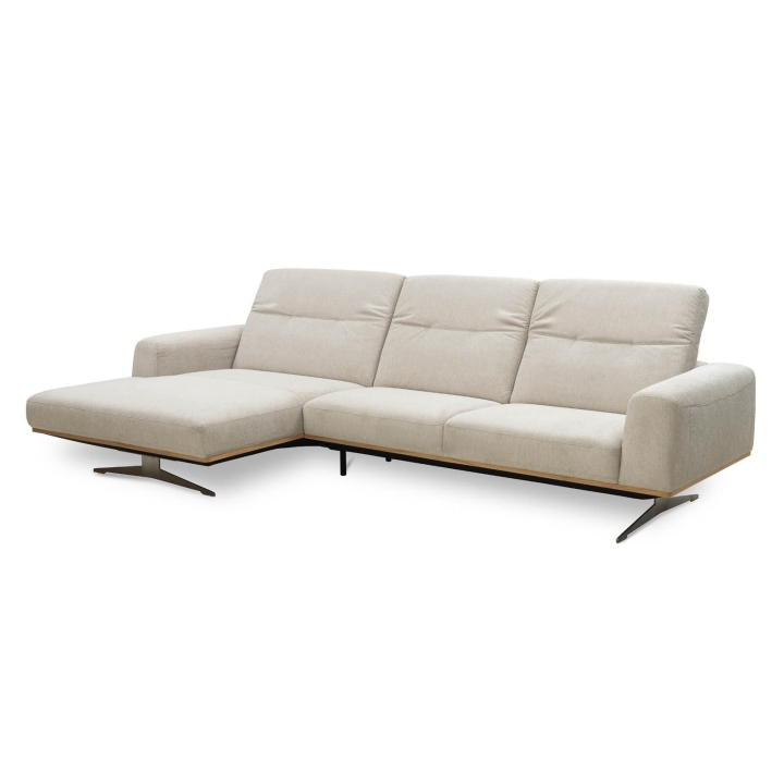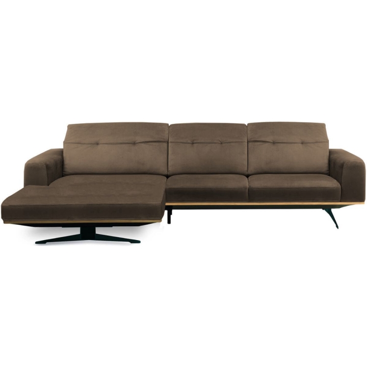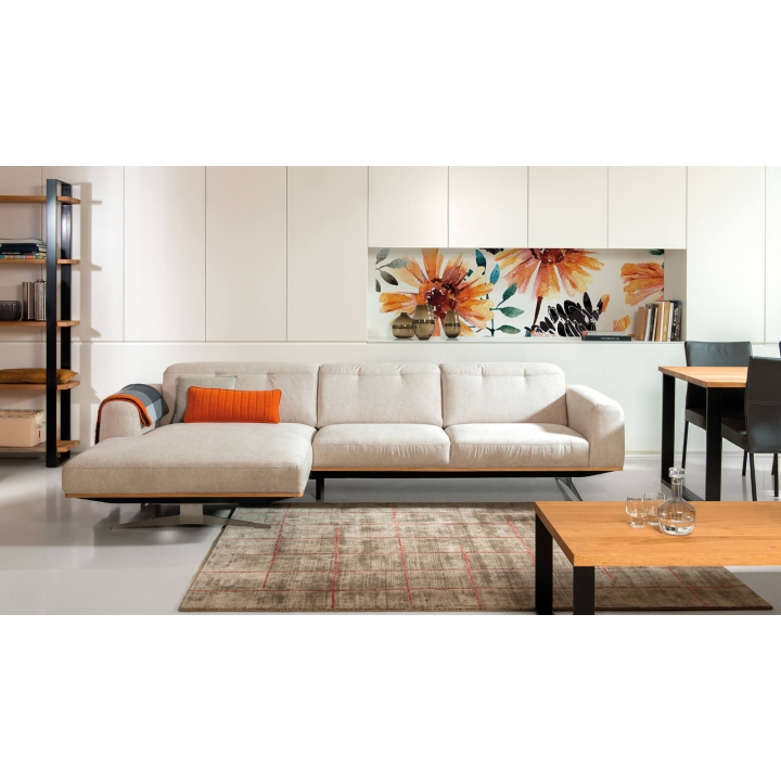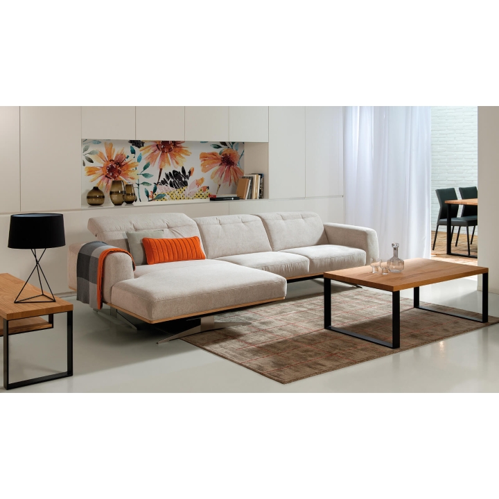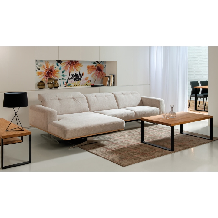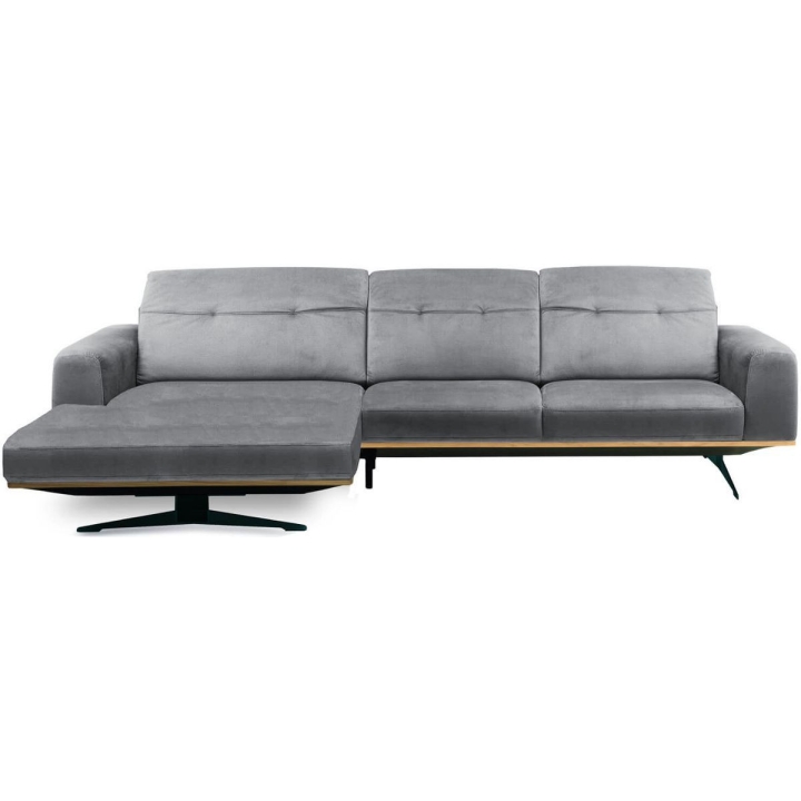 The Astro 1.5NW/3Ncorner sofa by Vero is a proposal for a modern furniture form. Built-in adjustable headrests make it possible to adjust the height and angle of the backrest to the user's needs. The structure of the furniture has been set on high steel skids, which gives the furniture a light and spacious form that will not overwhelm the interior and will ensure proper air circulation in rooms with underfloor heating. The metal skids also give the furniture an industrial and loft character. The decorative oak frame placed at the bottom of the structure adds a sophisticated flavour.