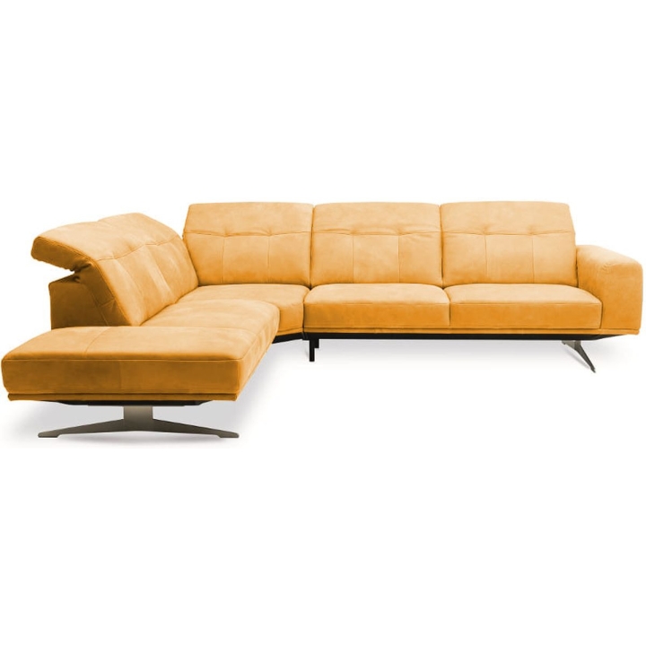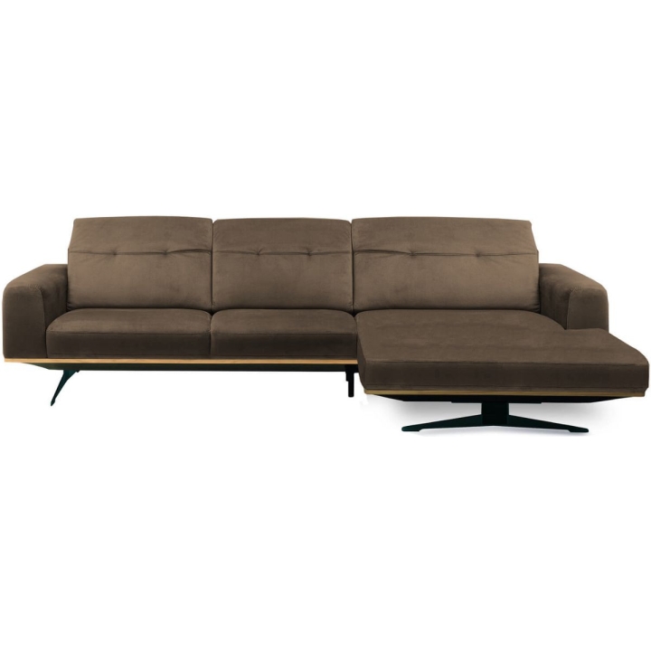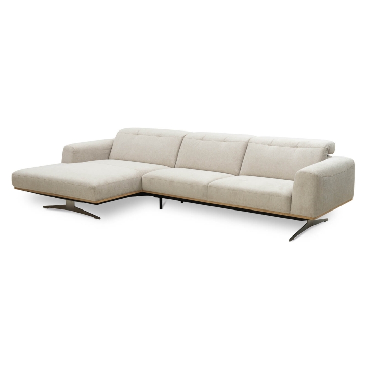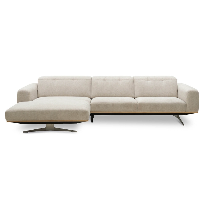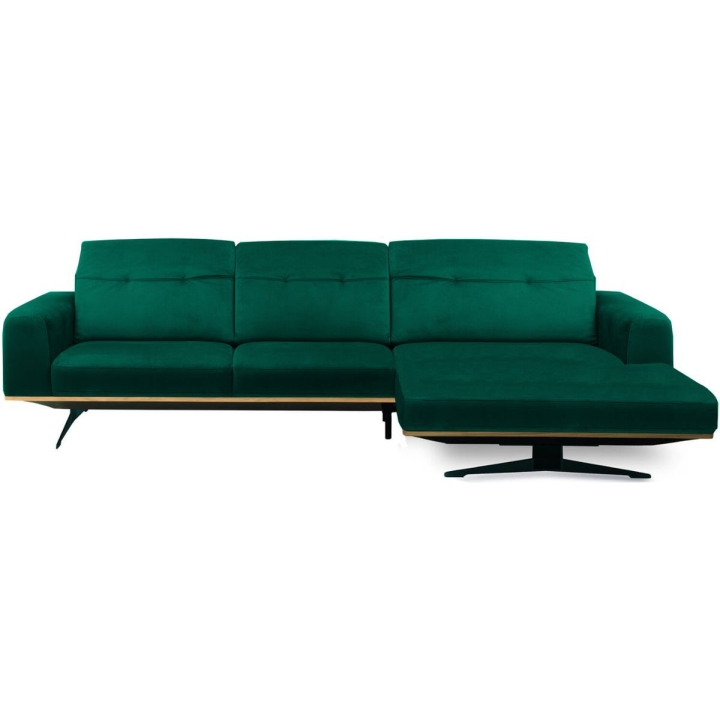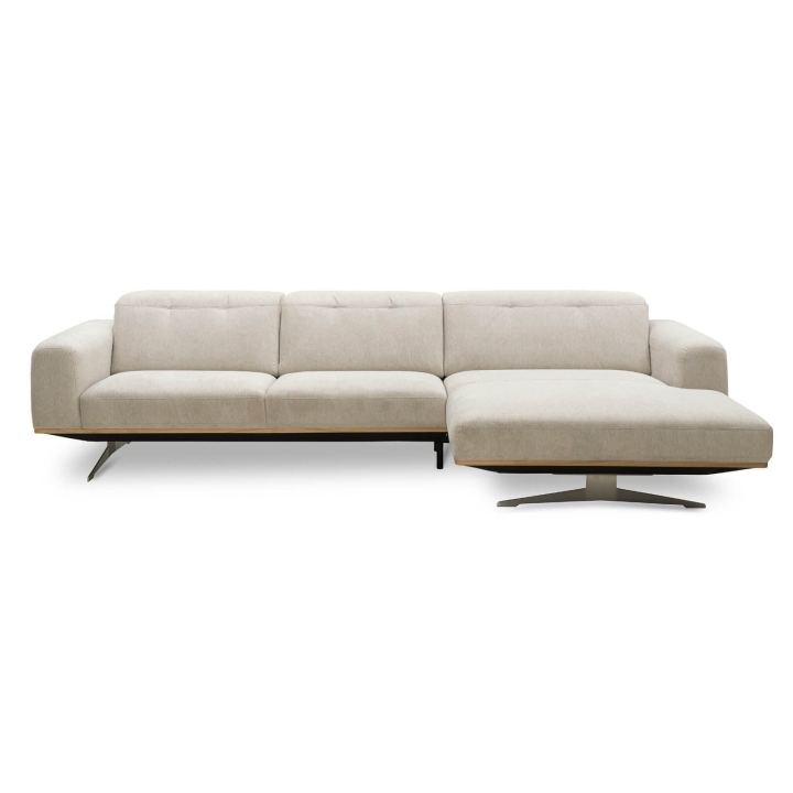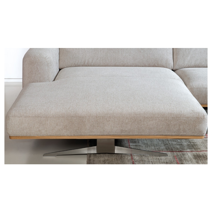 The Astro 1.5NW/3Ncorner sofa by Vero is a proposal for a modern furniture form. Built-in adjustable headrests make it possible to adjust the height and angle of the backrest to the user's needs. The structure of the furniture has been set on high steel skids, which gives the furniture a light and spacious form that will not overwhelm the interior and will ensure proper air circulation in rooms with underfloor heating. The metal skids also give the furniture an industrial and loft character. The decorative oak frame placed at the bottom of the structure adds a sophisticated flavour.