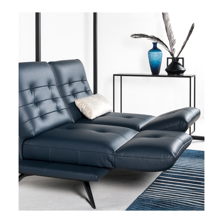Resting comfort is ensured by high backrests and headrests with gradual, manual angle adjustment. The seat module that can be rotated by 90° allows it to be transformed into a chaise longue, which allows you to comfortably stretch your legs. An additional advantage is the ability to adjust the angle of the armrests, which allows you to adjust the furniture to individual preferences.