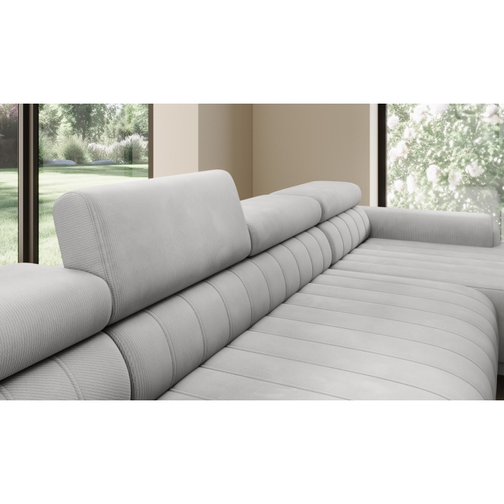 Thanks to the extensive configurator, it is possible to adjust the upholstery to individual aesthetic preferences. There is a choice of dozens of fabrics with different textures, colours and properties, which allows the corner sofa to easily fit into the intended design concept. The furniture offers not only comfort of use, but also the possibility of full visual personalisation.