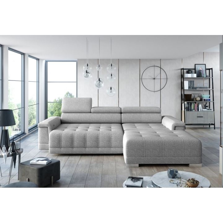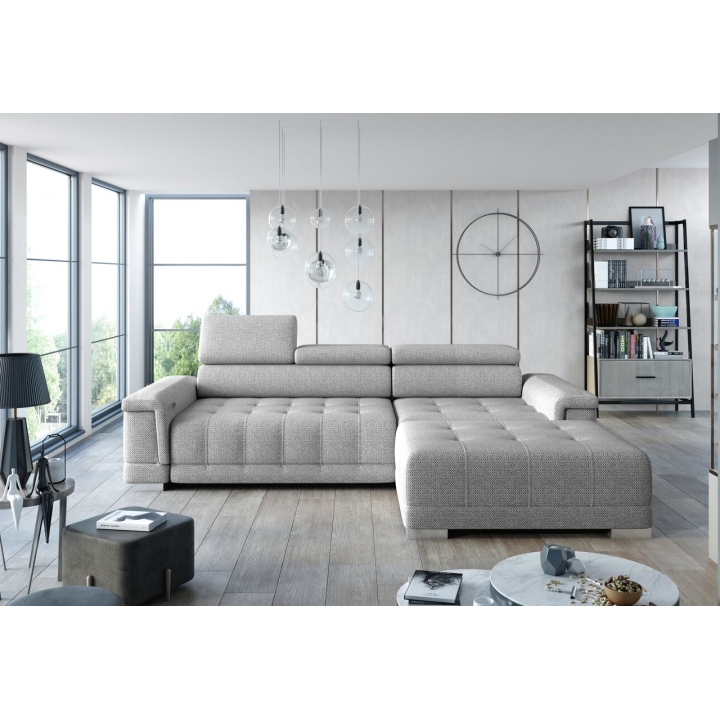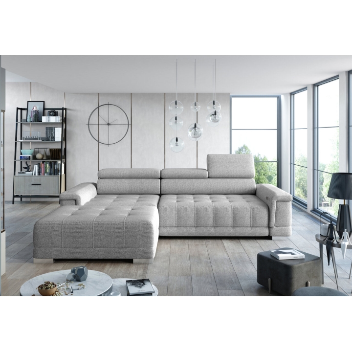 Thanks to the extensive configurator, it is possible to tailor the upholstery to individual aesthetic preferences. There is a choice of dozens of fabrics with different textures, colours and properties, allowing the corner sofa to easily fit into the intended design concept. The furniture offers not only comfort of use, but also the possibility of full visual personalisation.