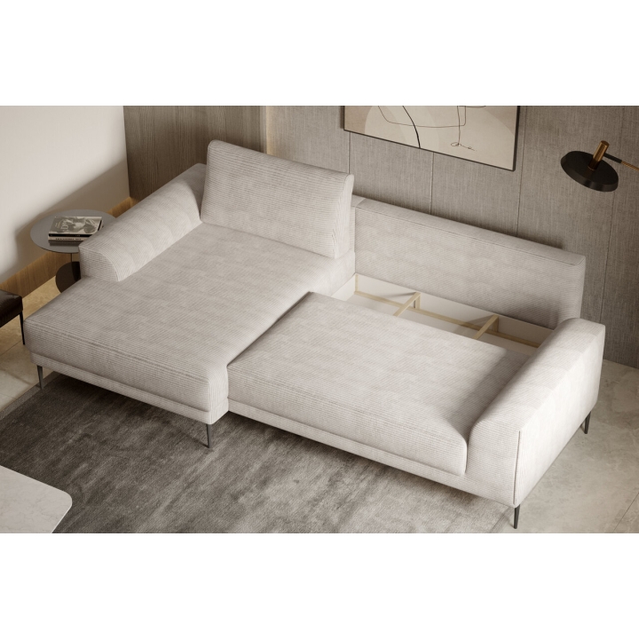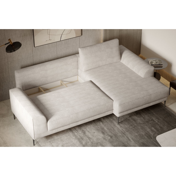 Thanks to the extensive configurator, it is possible to adjust the upholstery to individual aesthetic preferences. There is a choice of dozens of fabrics with different textures, colours and properties, which makes it easy to incorporate the corner unit into the intended design concept. The furniture offers not only comfort of use, but also the possibility of full visual personalisation.