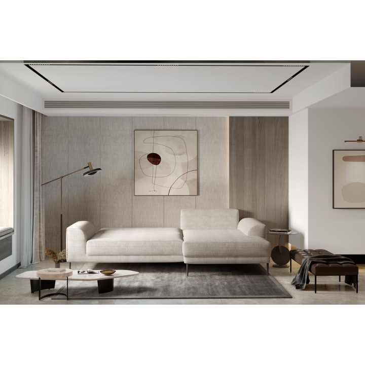 The Capitol corner sofa from Versailles is a proposal for those looking for a piece of furniture with a distinctive form, which will find its way well into modern, subdued interiors. Black metal legs with a height of 17 cm give it lightness and emphasise its contemporary character. The carefully designed proportions make the furniture a strong accent in the living area.