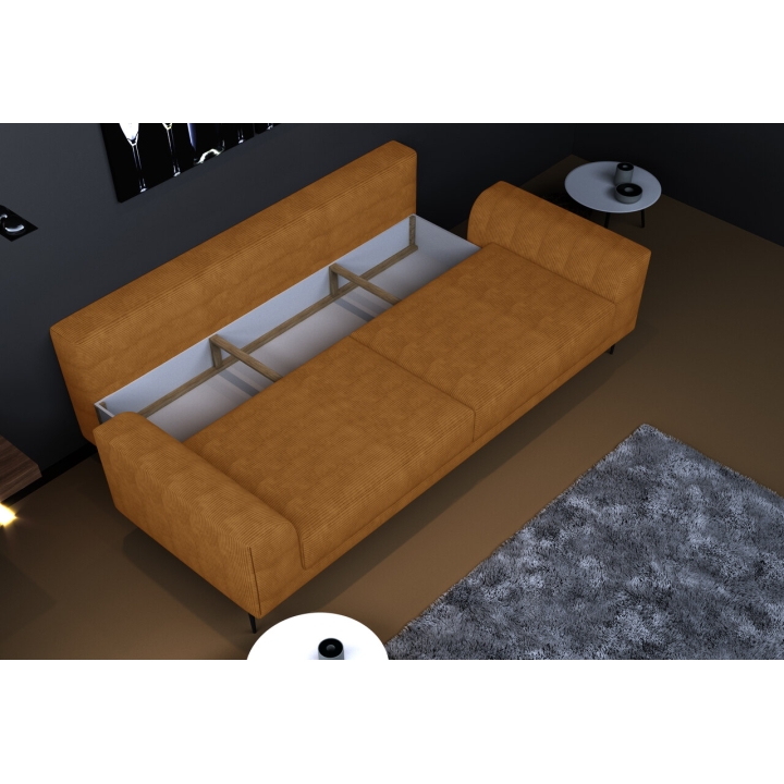The furniture measures 250 cm wide, 105 cm deep and 73 cm high - or 89 cm if you include the backrest cushions. The seat is 60 cm deep, while the seat height reaches 47 cm, allowing the user to rest comfortably even without unfolding the sofa. Such proportions guarantee freedom of use regardless of the time of day.