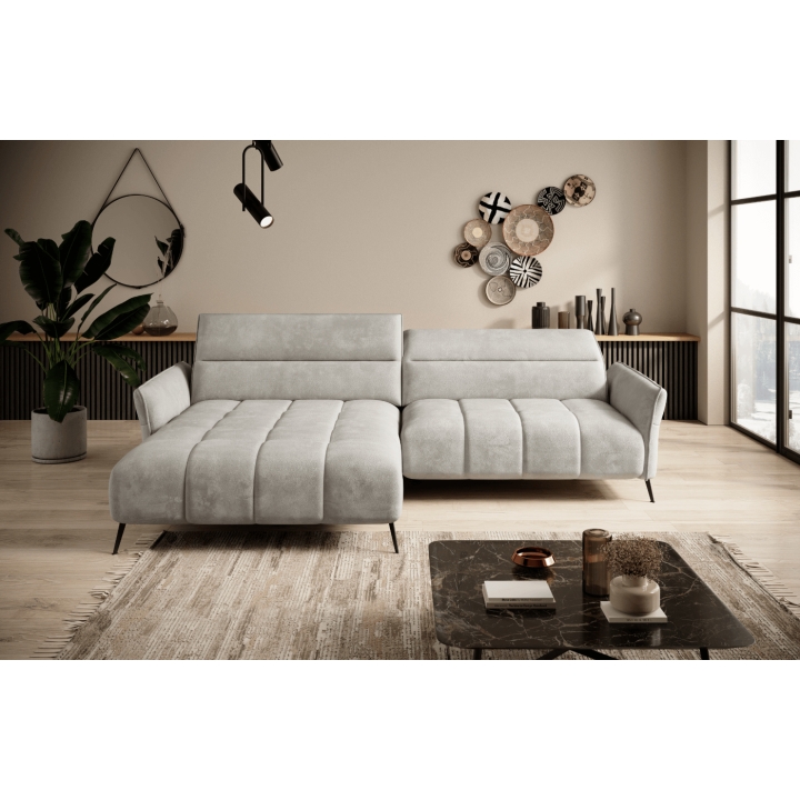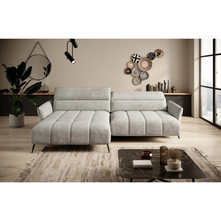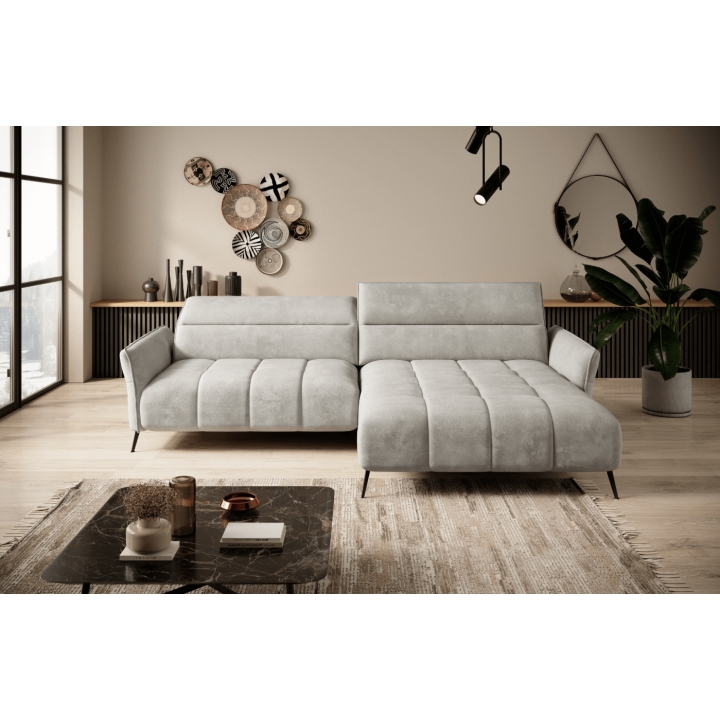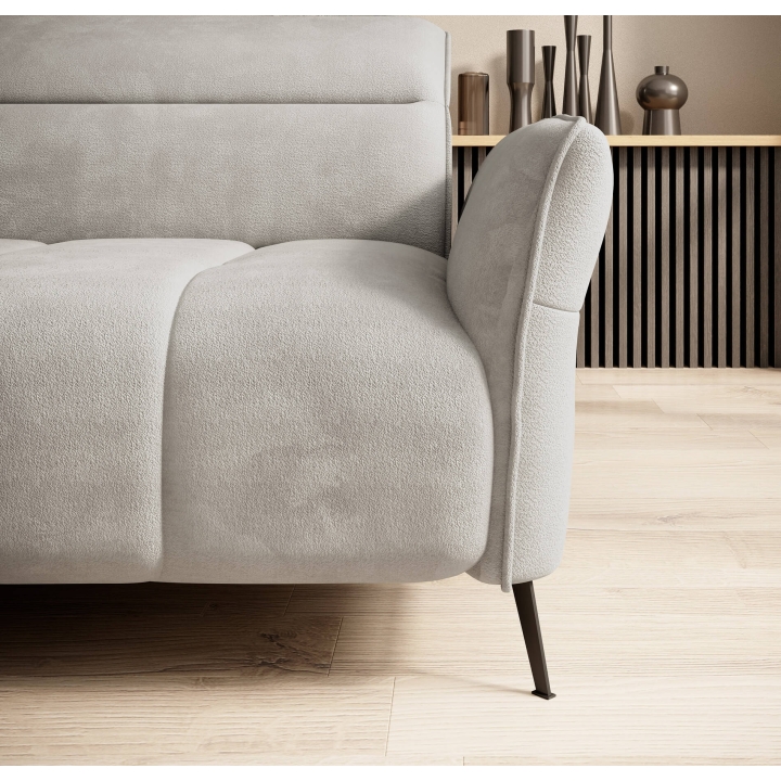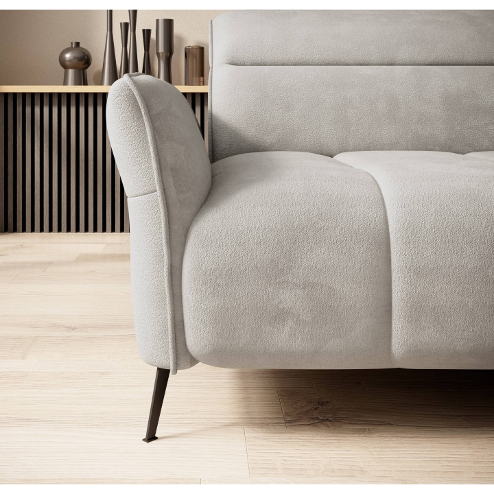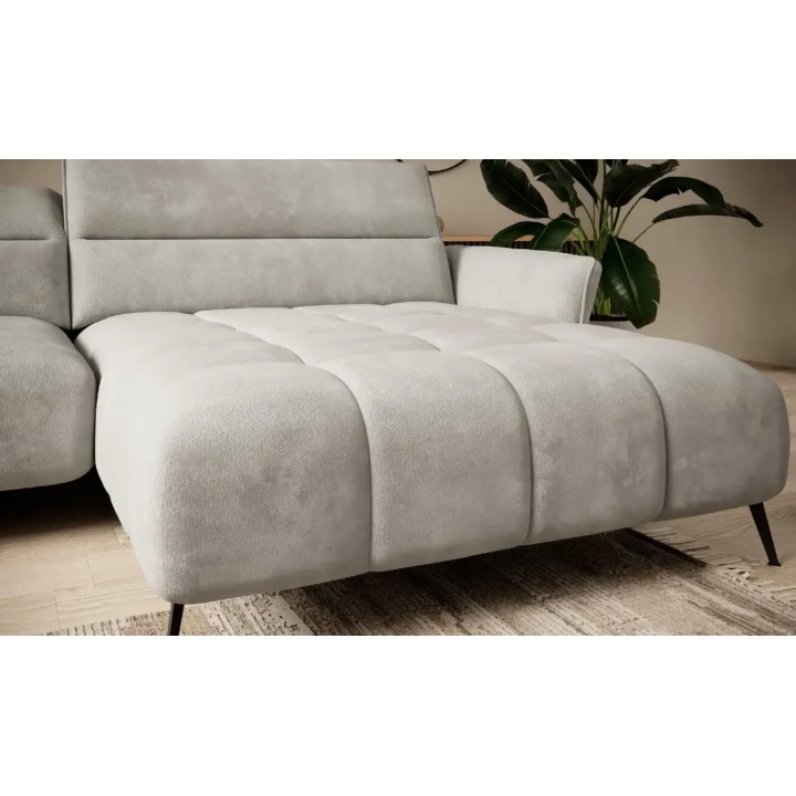 The furniture is equipped with adjustable headrests and armrests, making it possible to adjust it to the user's individual preferences. The seat, thanks to an electric mechanism, extends to a depth of 27 cm, offering the comfort of a recliner without the need for a classic reclining system. This solution makes the lying area reach approximately 83 × 210 cm.