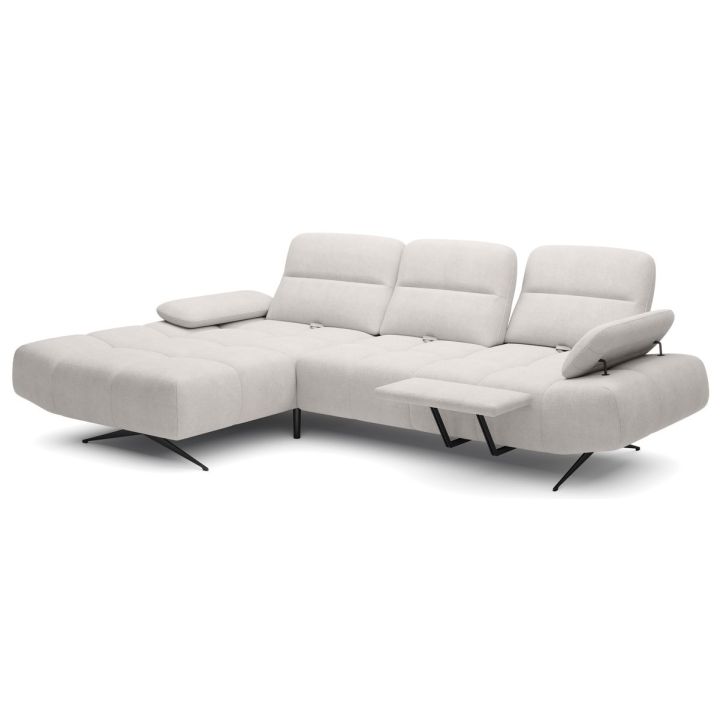 This model is equipped with three movable headrests, as well as a sliding backrest section, which allows for individual position adjustment. There is also a movable armrest, and an optional electrically extendable footrest is available to increase relaxation comfort. The design is available in a right or left-hand variant to suit the layout of the room.