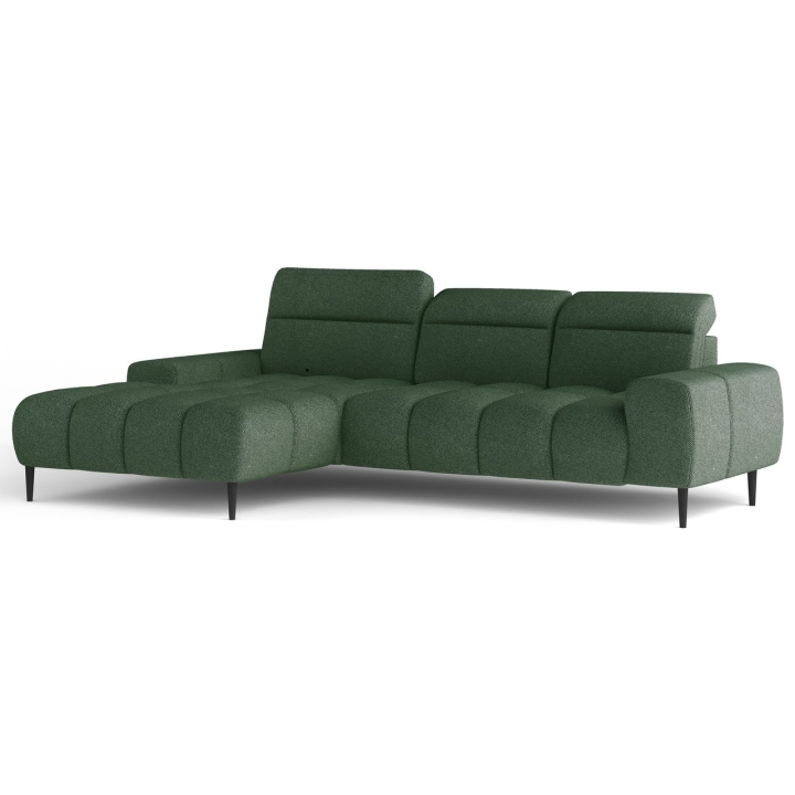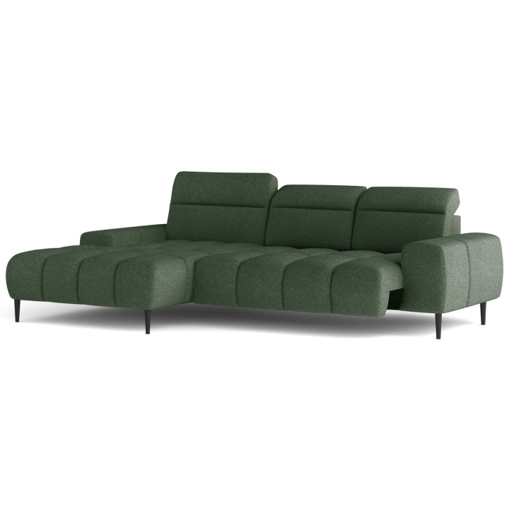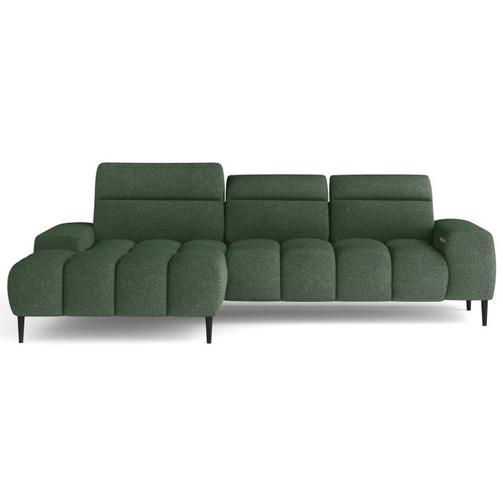 This model features an electrically extendable seat, which allows for a subtle increase in usable space without interfering with the structure. The three independent headrests can be adjusted to individual preferences, further enhancing the comfort of the lounge. The use of 15 cm high metal legs in black gives the furniture a modern character and makes it easy to keep tidy.