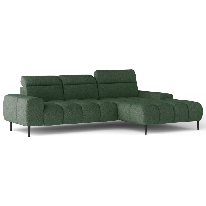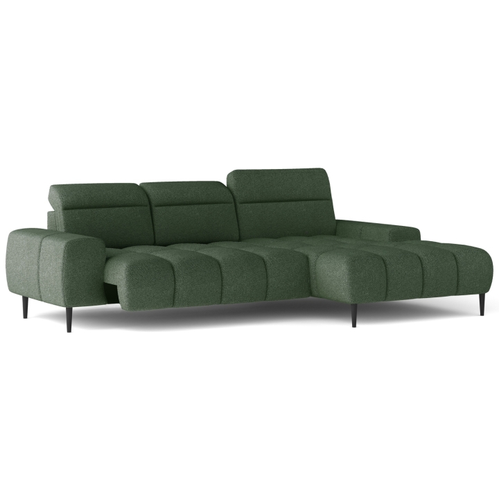 This model features an electrically extendable seat, which allows for a subtle increase in usable space without interfering with the structure. The three independent headrests can be adjusted to individual preferences, further enhancing the comfort of the lounge. The use of 15 cm high metal legs in black gives the furniture a modern character and makes it easy to keep tidy.